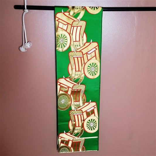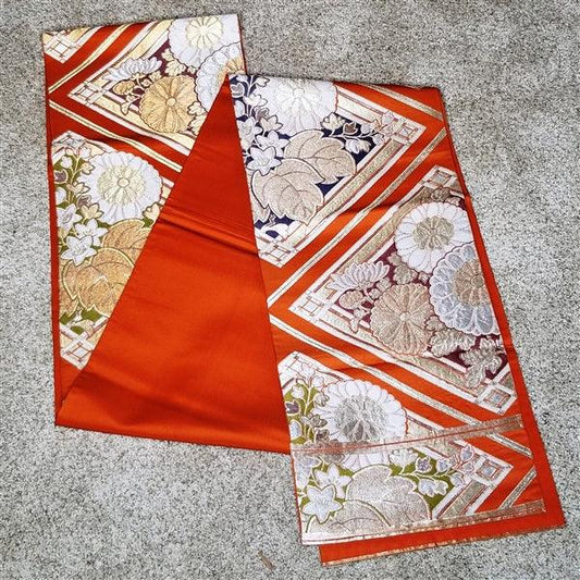 Fukuro obi are patterned on the front side only, but with a one meter plain section on the front (which wouldn't be seen when worn), and a plain back side.