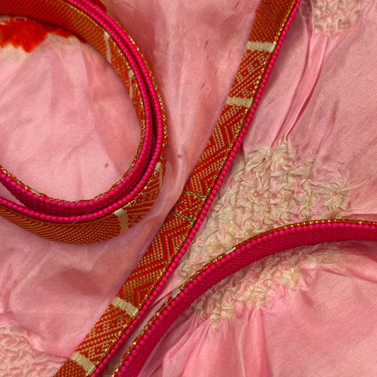 We also carry obijime (the finishing cord) and obiage (the scarf-like accessory), but we do not sell the other formal kimono-dressing (kitsuke) components.