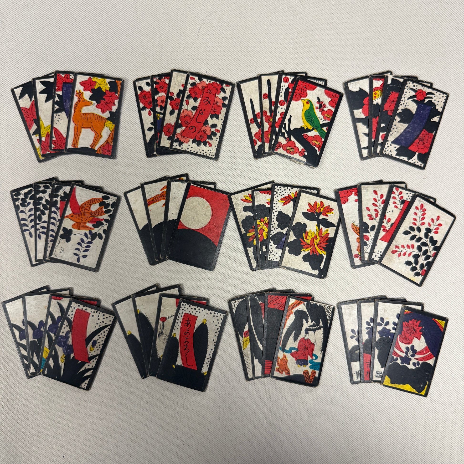 This listing is for a complete set of vintage hanafuda cards. Hanafuda is a traditional Japanese card game that blends art, strategy, and seasonal symbolism.