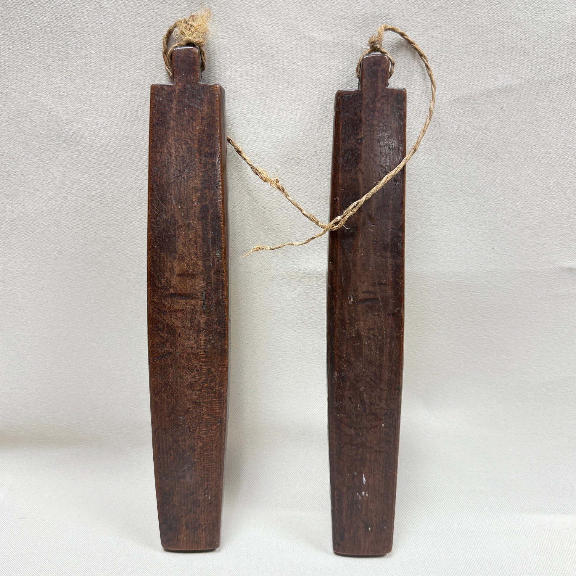 Based on the wear, wood oxidation, and simple rope attachment, this pair likely dates to the early to mid-20th Century. Collectors interested in Japanese folk craft, theatrical props, or fire patrol artifacts might like to add these to their treasures.