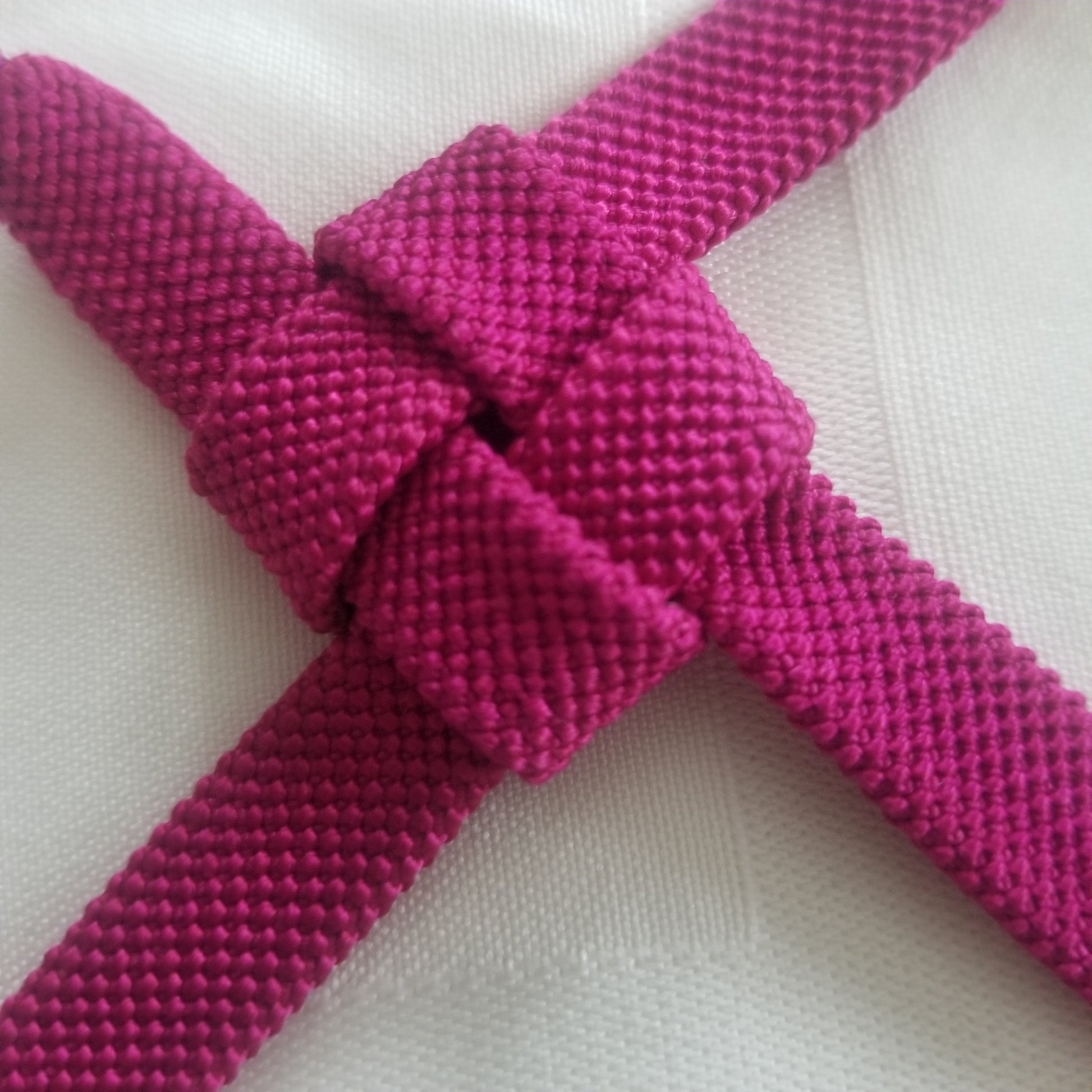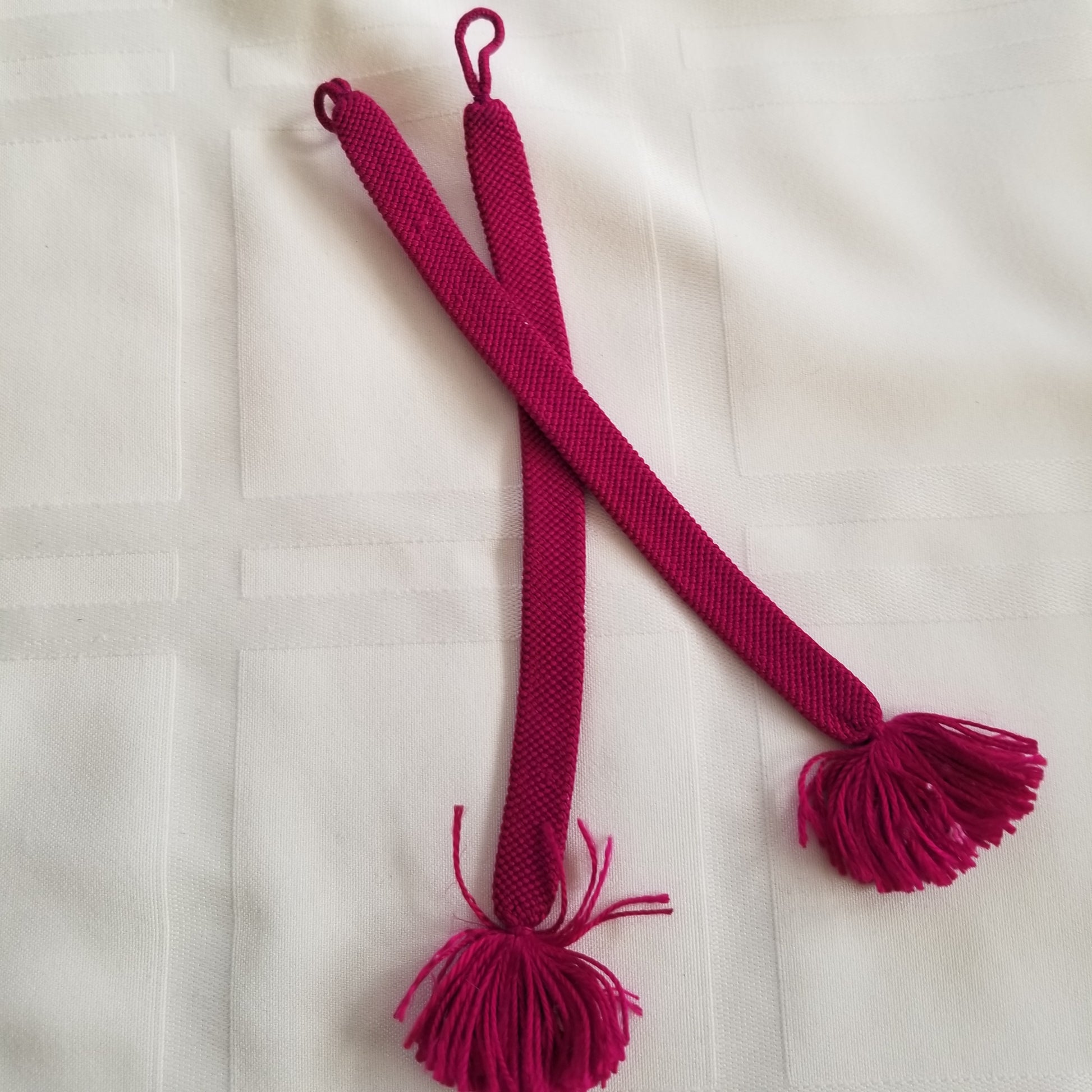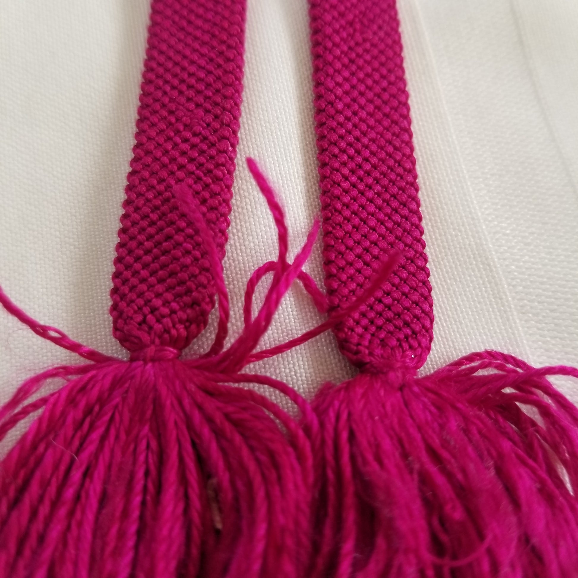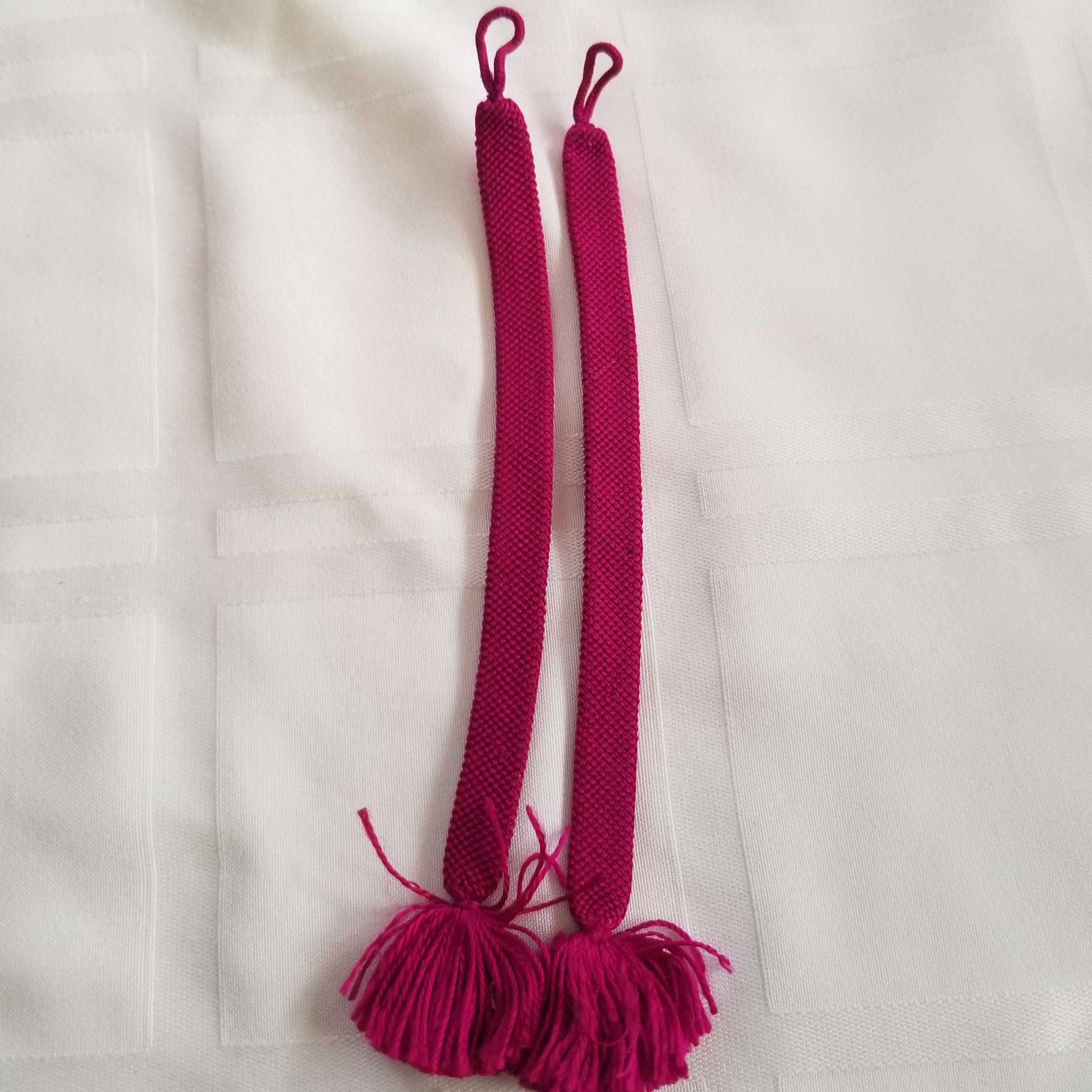 This listing is for a pair of vintage himo ties in a bright berry pink with no pattern other than the slight bumpy texture of the weave.
