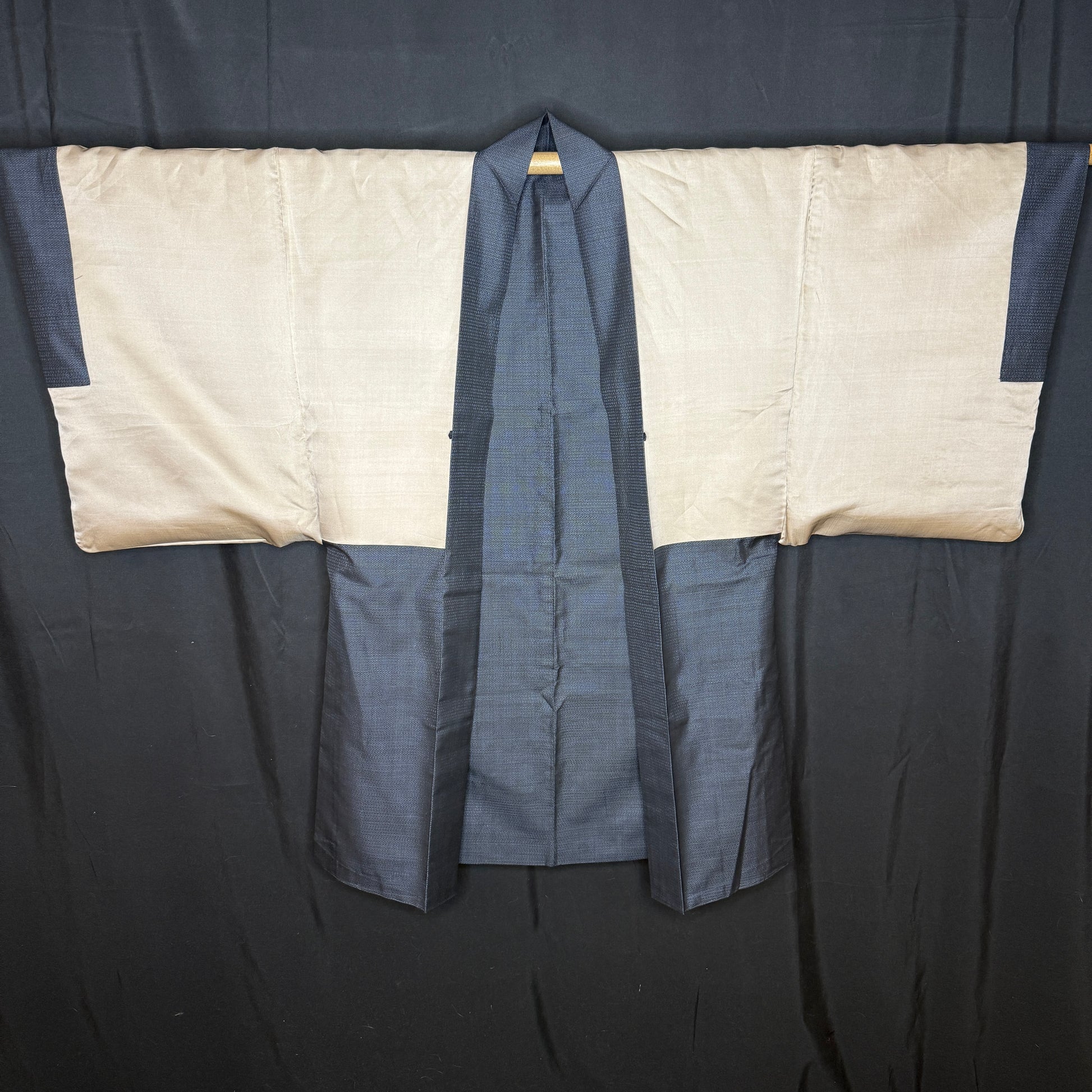 This is a vintage kimono jacket, called a haori, made for a man. The lining of men's haori jackets often depict a scene or motif that was of special interest to the original owner. We often display these jackets inside out to show the lining, and they could be worn this way - inside out - as well; a style that is becoming trendy among Japanese youth. See video below for how haori are worn these days.