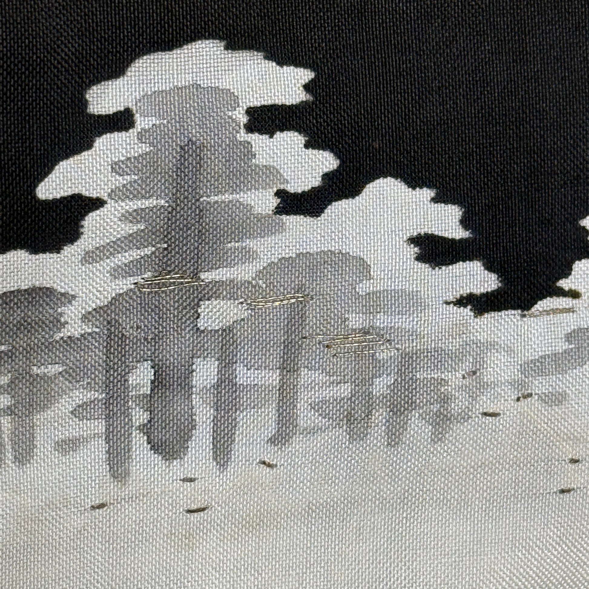 This kimono may well be an antique - over 100 years old or close to it. Note that the design, dye work and delicate brushstrokes are more ethereal, understated, and refined than other miyamairi from post-war Japan.