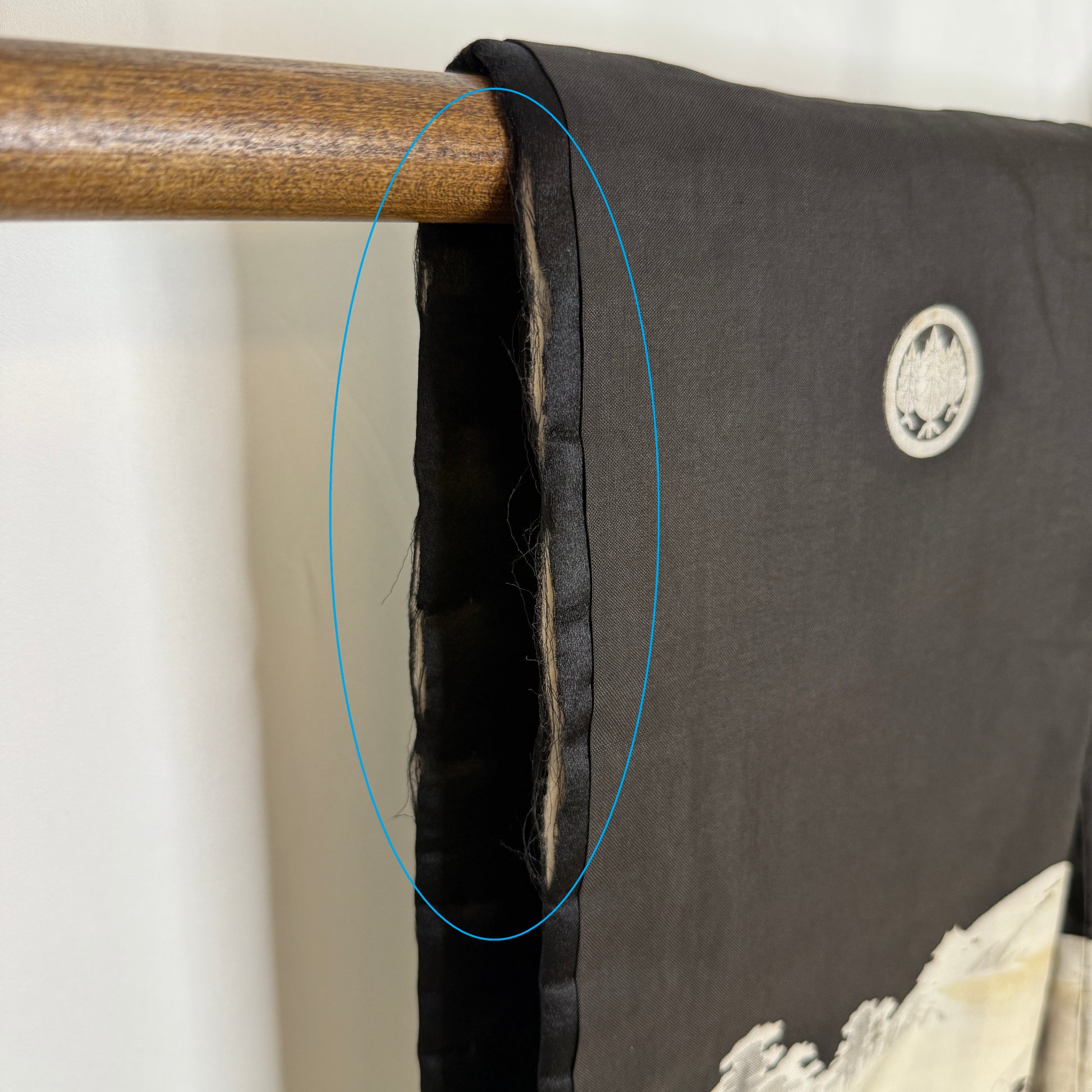 This kimono is slightly padded for additional warmth. Unfortunately, there is some mottling from age as well as a worn area on one sleeve edge. See last photos.