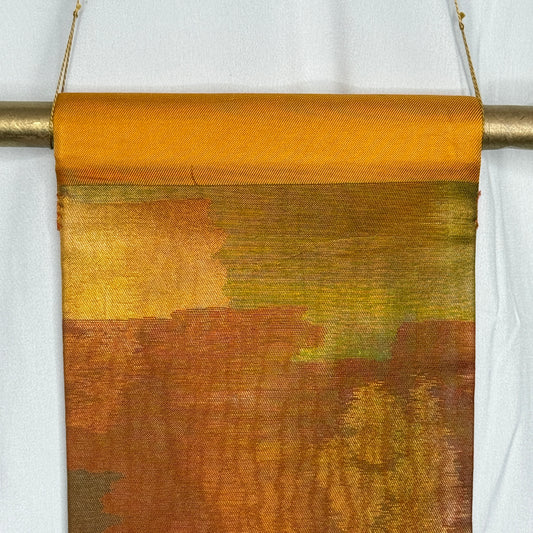 We create our Japanique Tapestries by upcycling what we can when other sections of the garment are beyond repair or rescue. This listing is for a wall hanging tapestry made from a vintage obi belt.