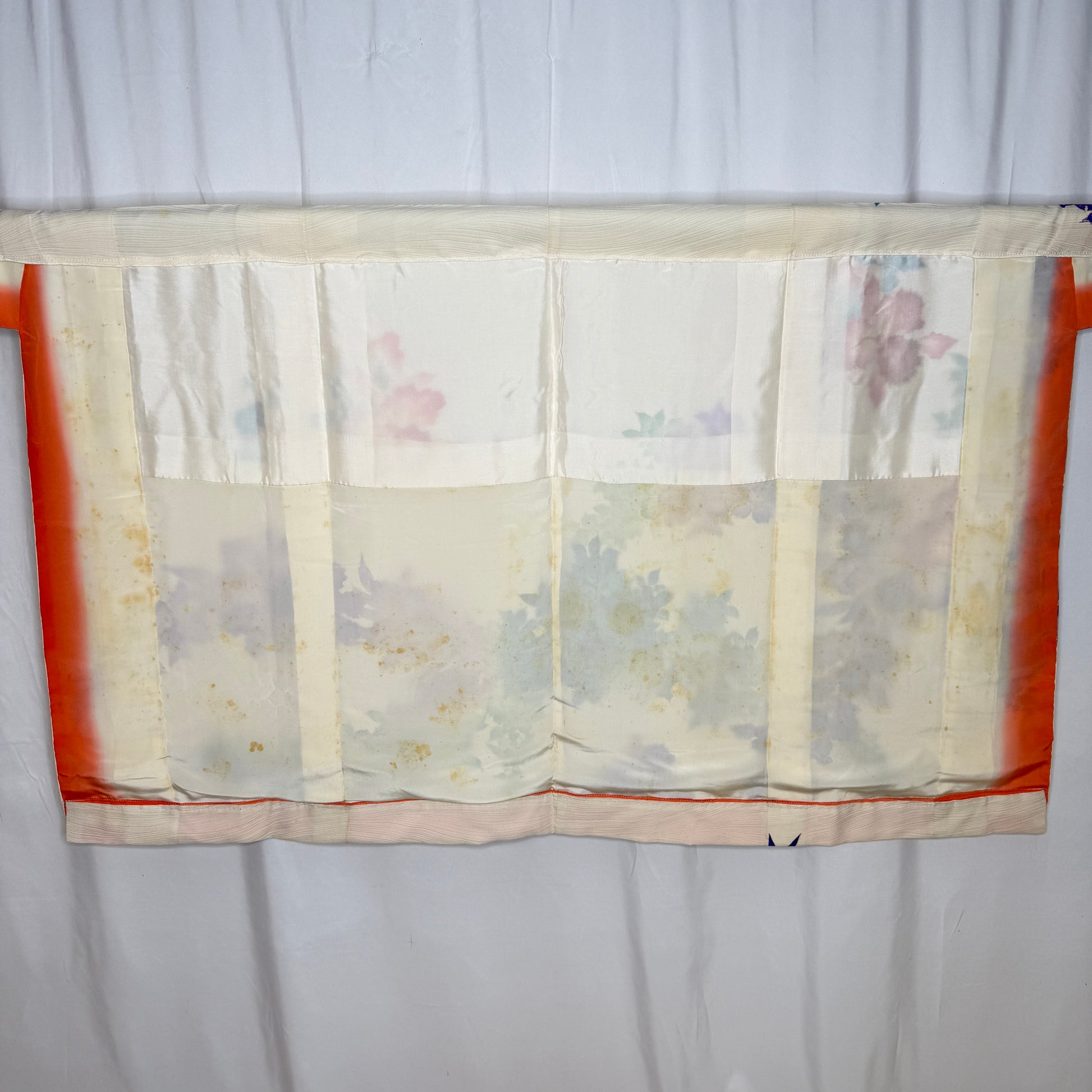 We create these tapestries by salvaging a portion of a kimono when other sections of the garment are beyond repair or rescue. This listing is for a wall hanging tapestry made from a woman's kimono.