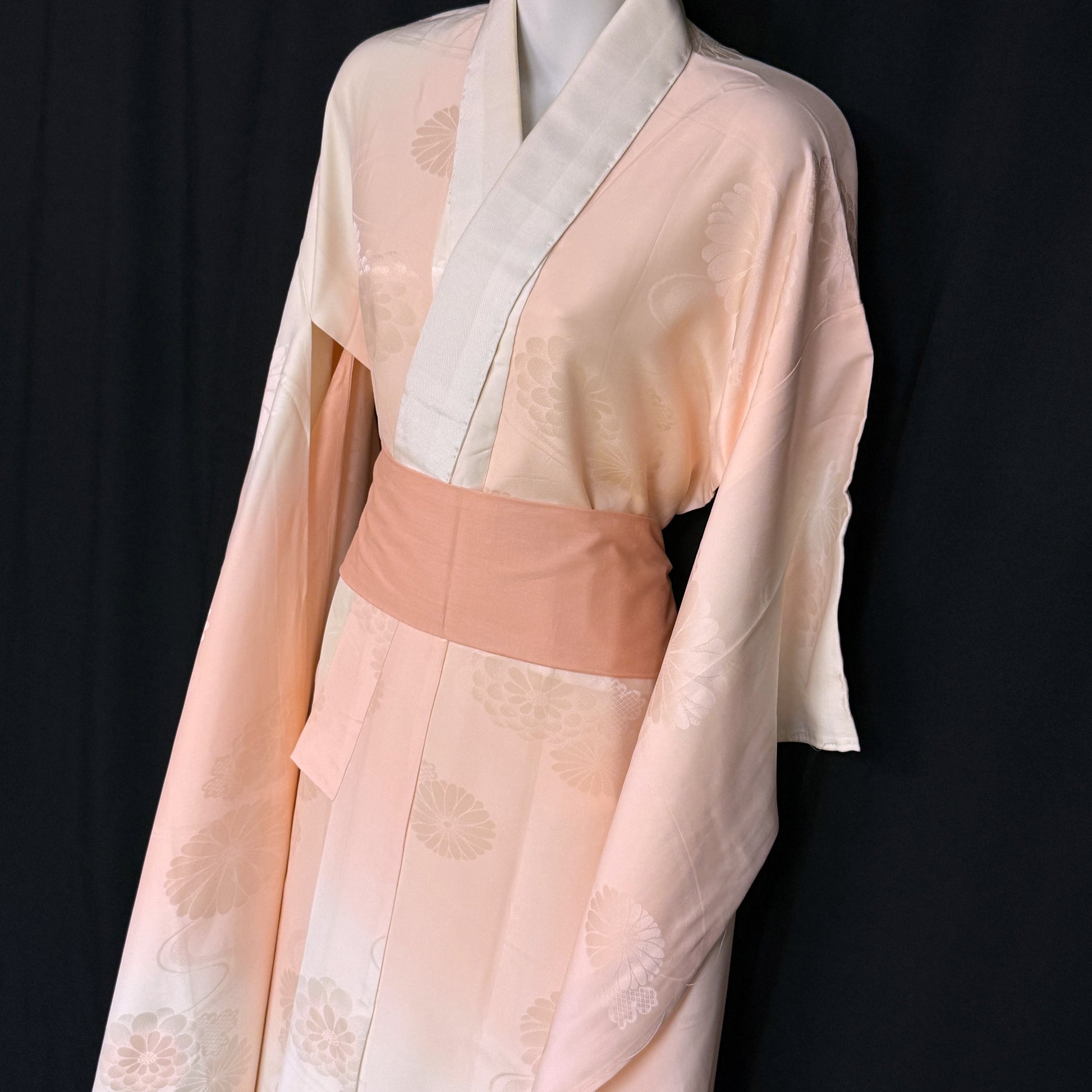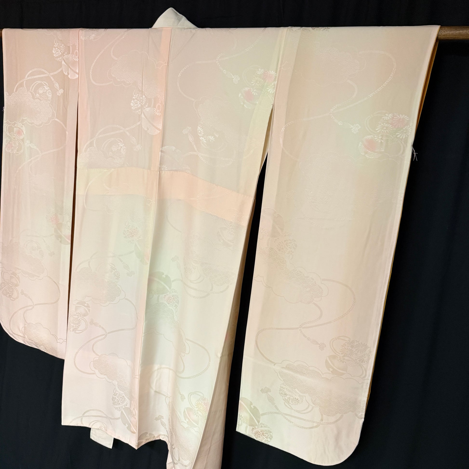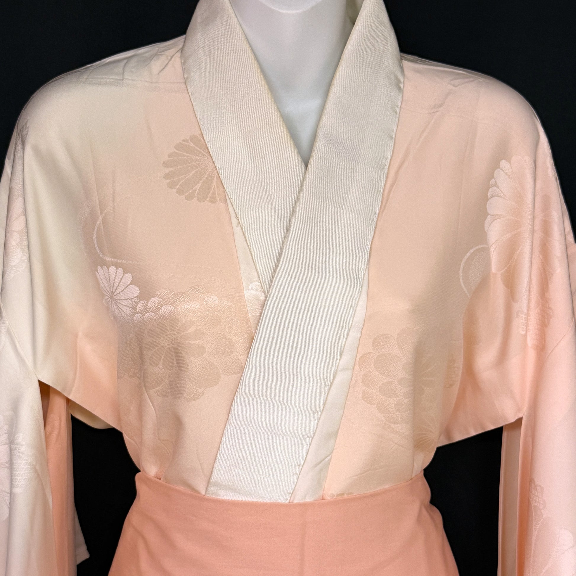 Juban are typically a mix of white/cream/pink with a floral jacquard, but rarely other embellishments. Each has a white collar that would be covered by an elaborately embroidered over-collar before being worn beneath the very formal furisode.
