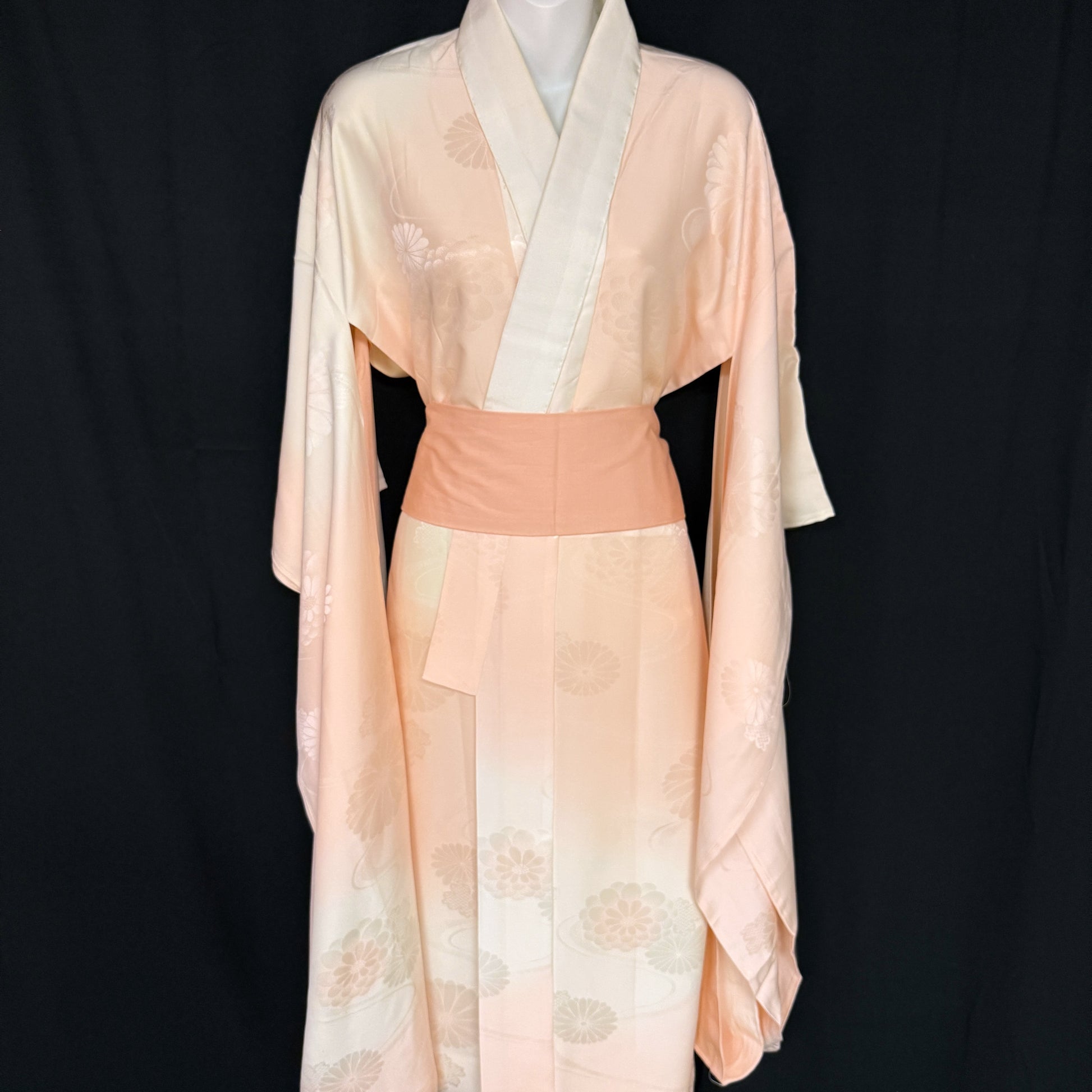 This listing is for a vintage furisode (long sleeved) underkimono (called juban in Japanese) made to be worn beneath a formal furisode kimono. Underkimono make great robes because they are shorter than outer kimono and don't have extra length needing to be folded over to pad the waist. See the video below about how juban are traditionally worn.