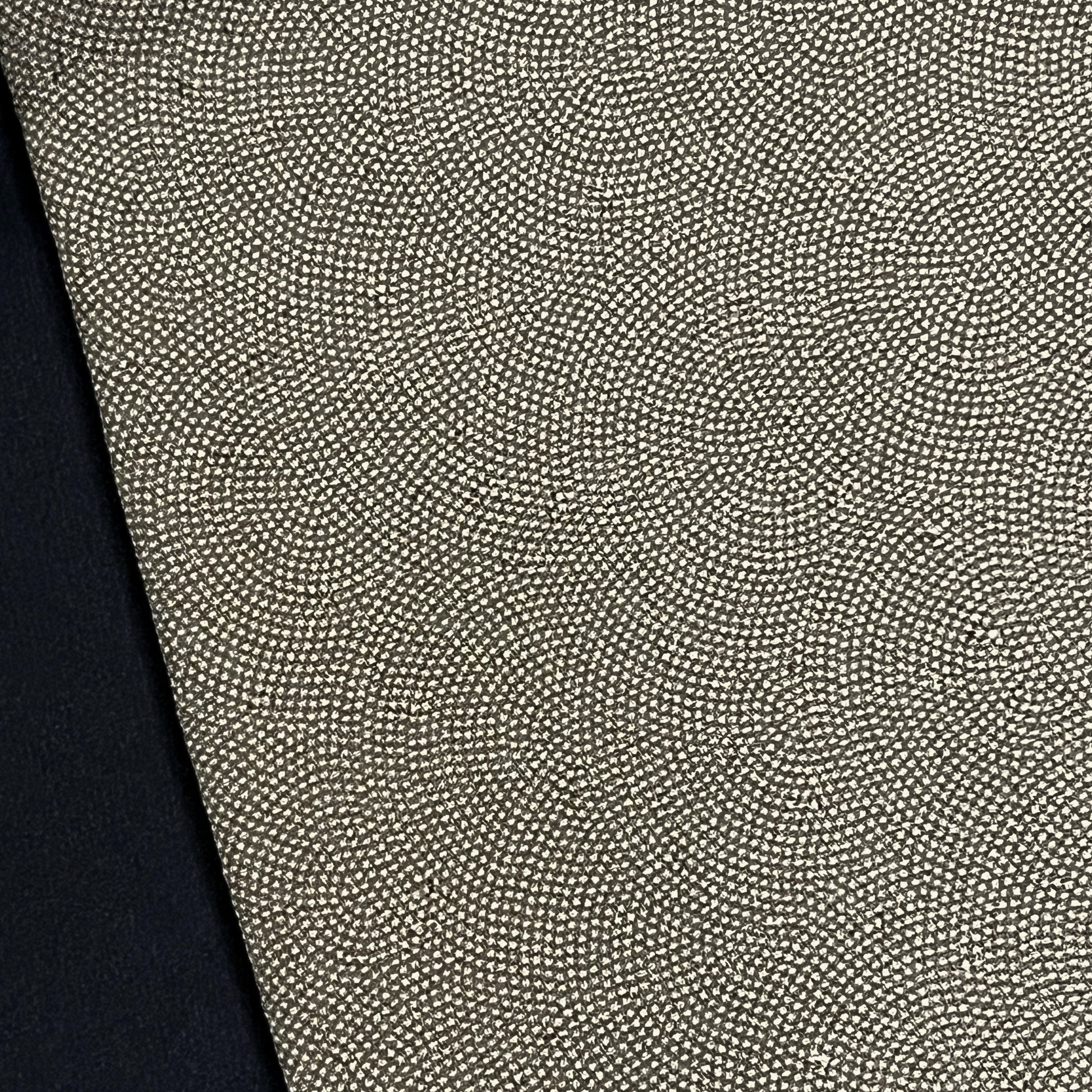 The kimono features a sweet silk in the color of hojicha - japanese roasted green tea - in a stenciled komon (shark skin) motif. This pattern of small concentric dots was created with a hand-punched paper stencil or katagami. See the video below to learn about those are made and used.