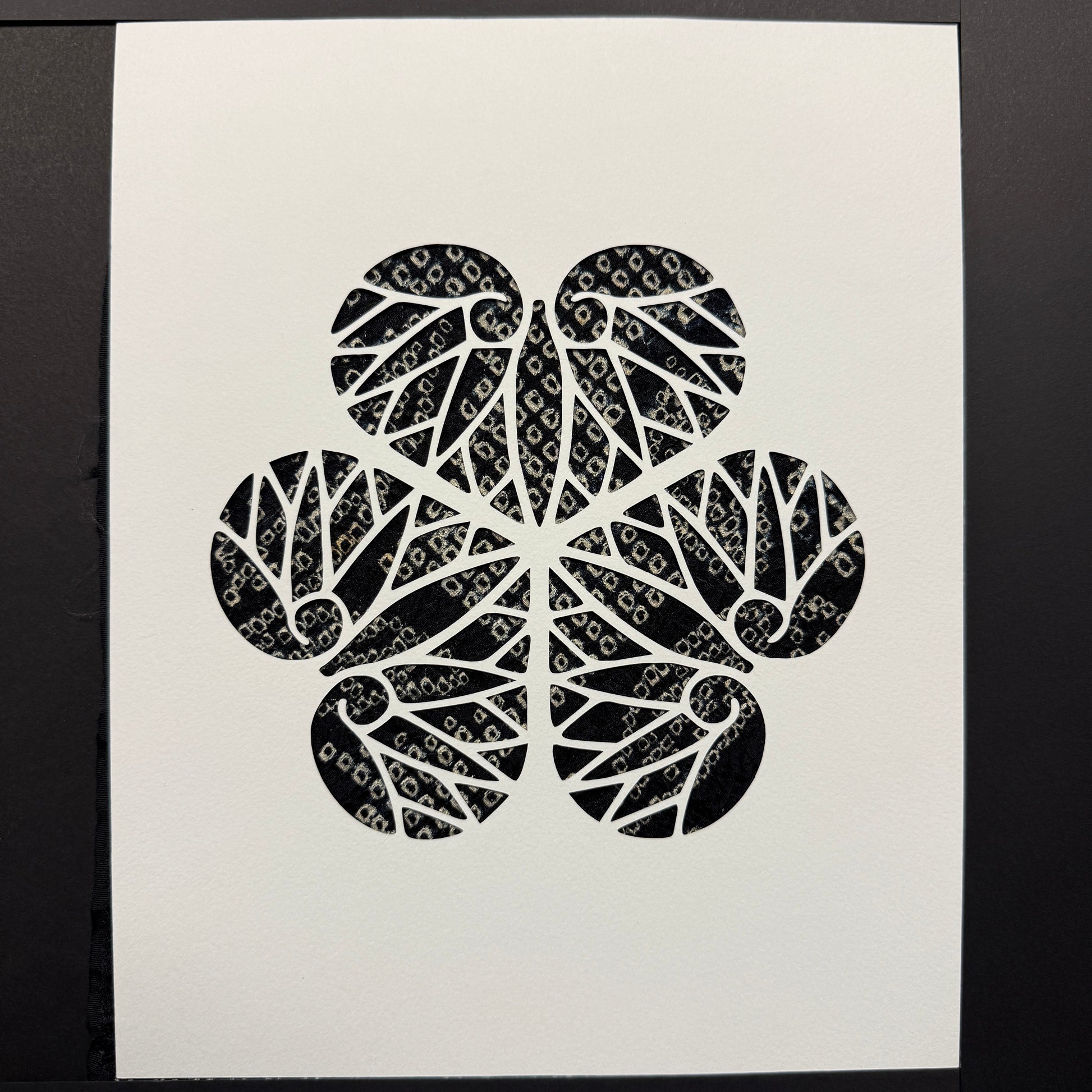 This listing is for a decorative image taken from a vintage Japanese katagami stencil, suitable for framing. It is not part of the original stencil - it is a copied image, machine-cut, on thick art paper. See below for how these traditional stencils were designed, cut by hand and used to pattern Japanese textiles.