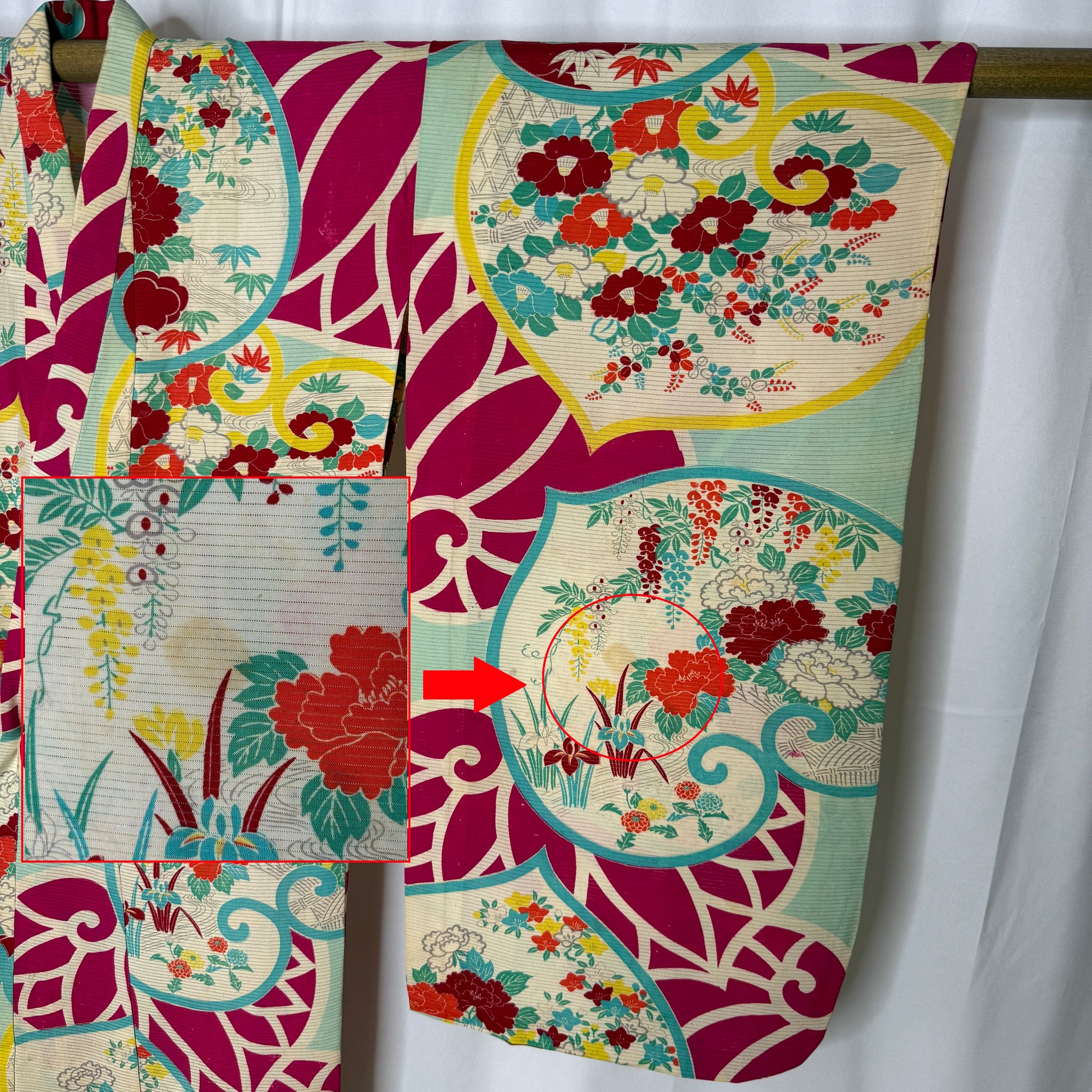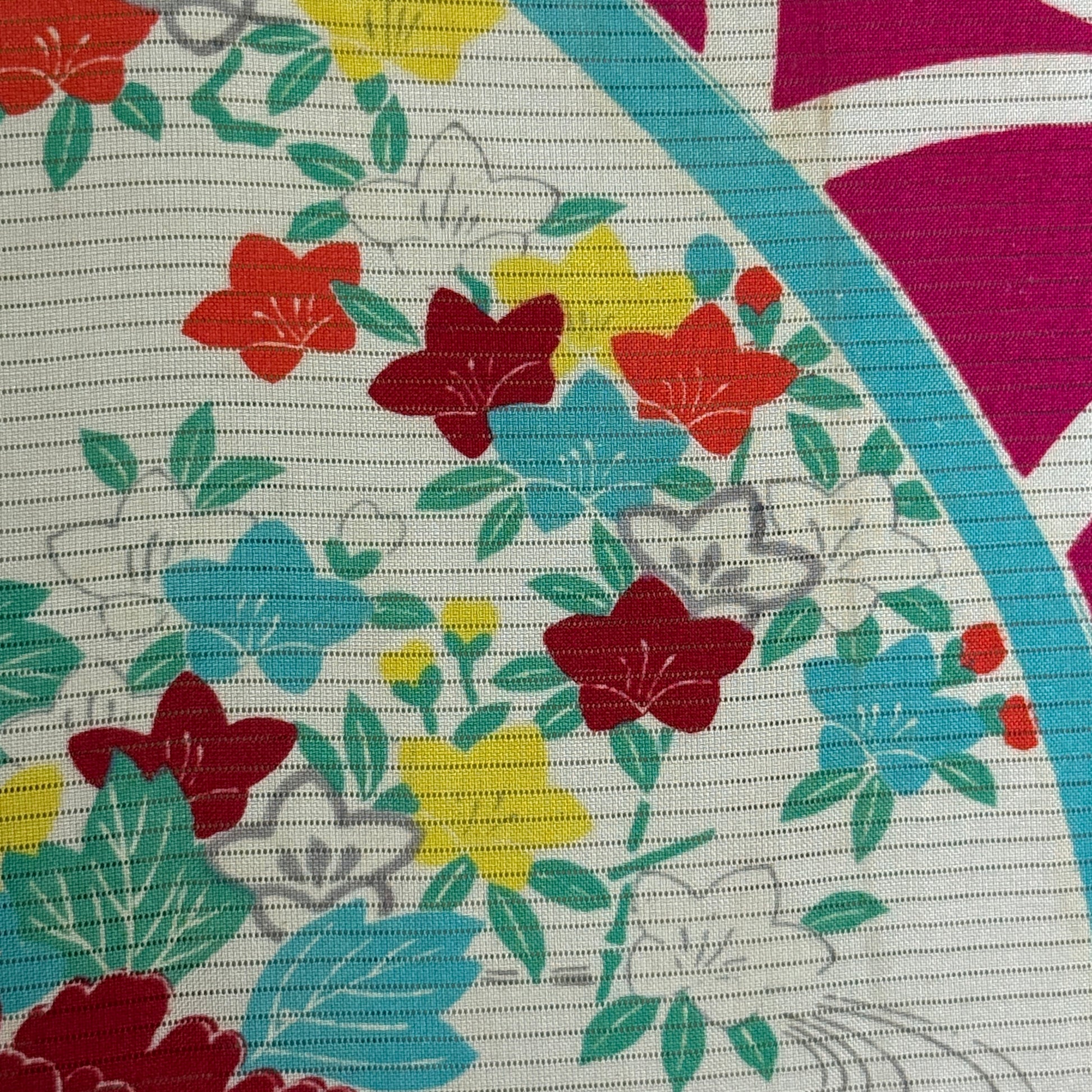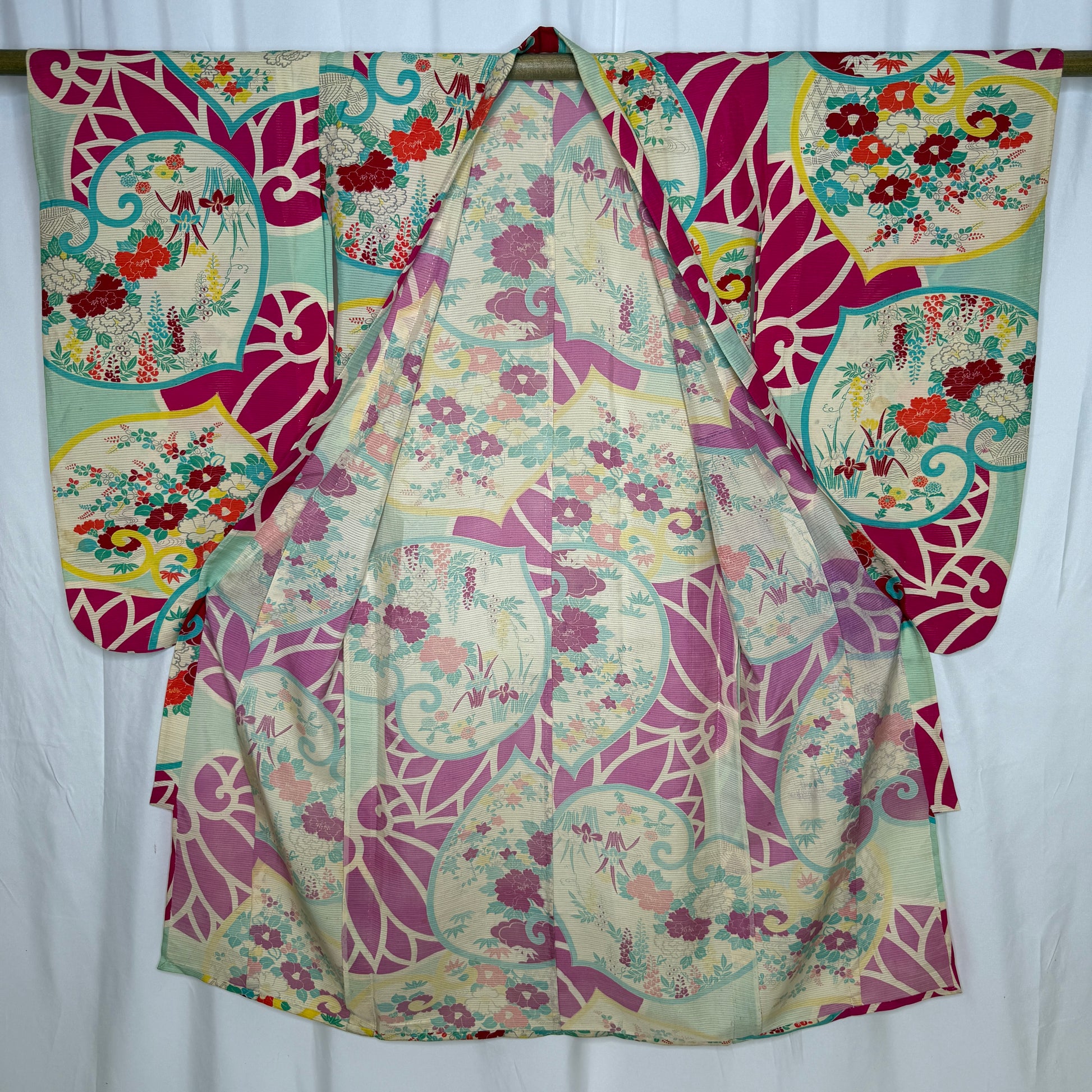 Vintage Japanese children's kimono make eye-catching displays in spaces too small to accommodate a full-sized kimono. We offer display rods (click the tab below) if you're going to display this kimono.