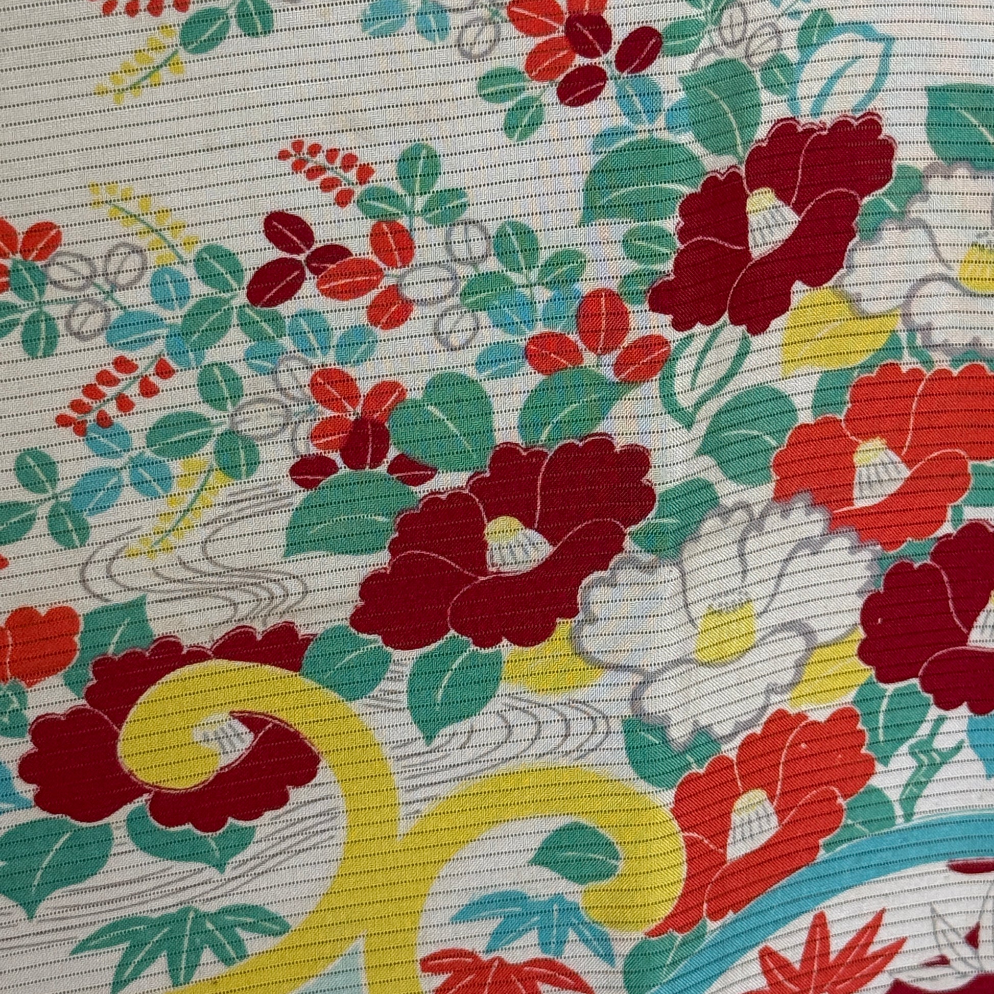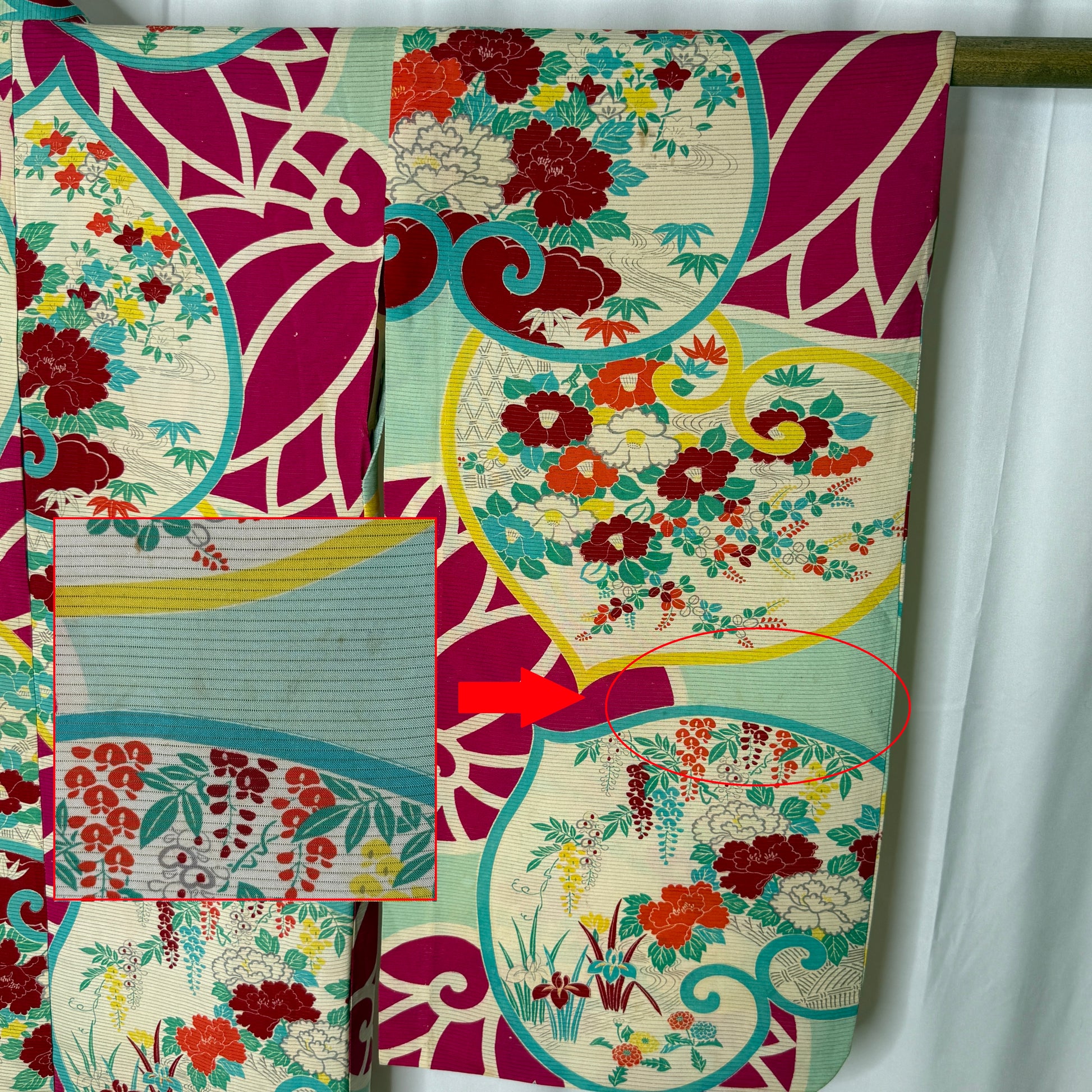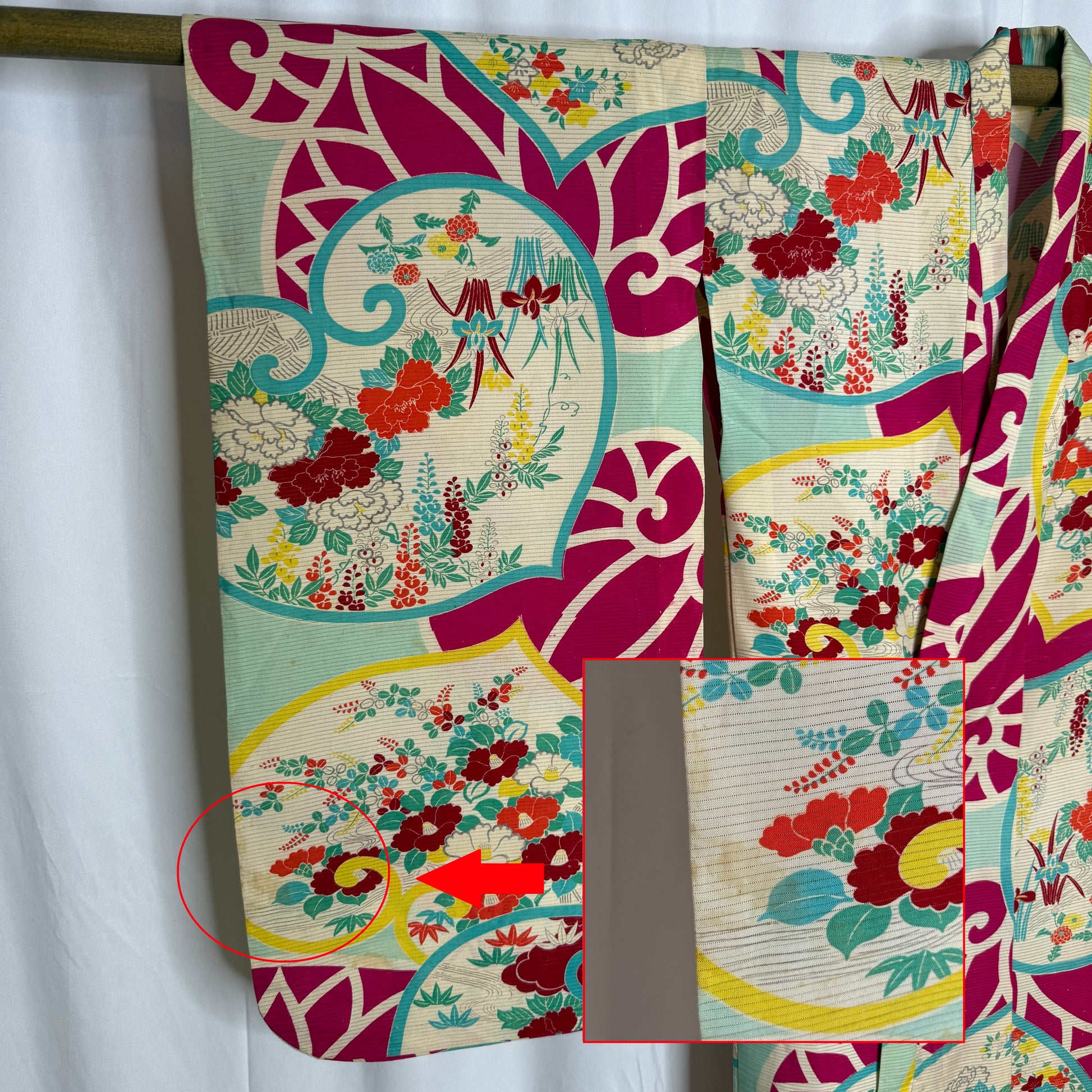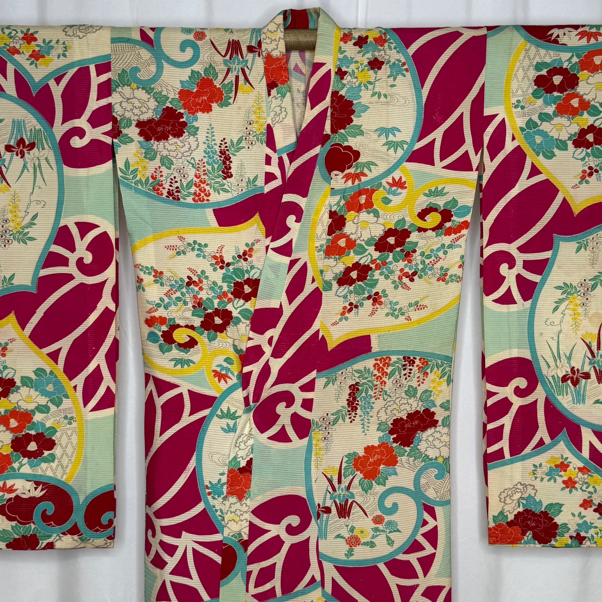 Vintage Japanese children's kimono make eye-catching displays in spaces too small to accommodate a full-sized kimono. We offer display rods (click the tab below) if you're going to display this kimono.