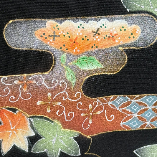 This listing is for a vintage Japanese haori jacket that would have been worn on top of a vintage kimono on a chilly day. Black haori like this are sometimes called "visiting haori" since they were worn for semi-formal occasions, like attending a community gathering.