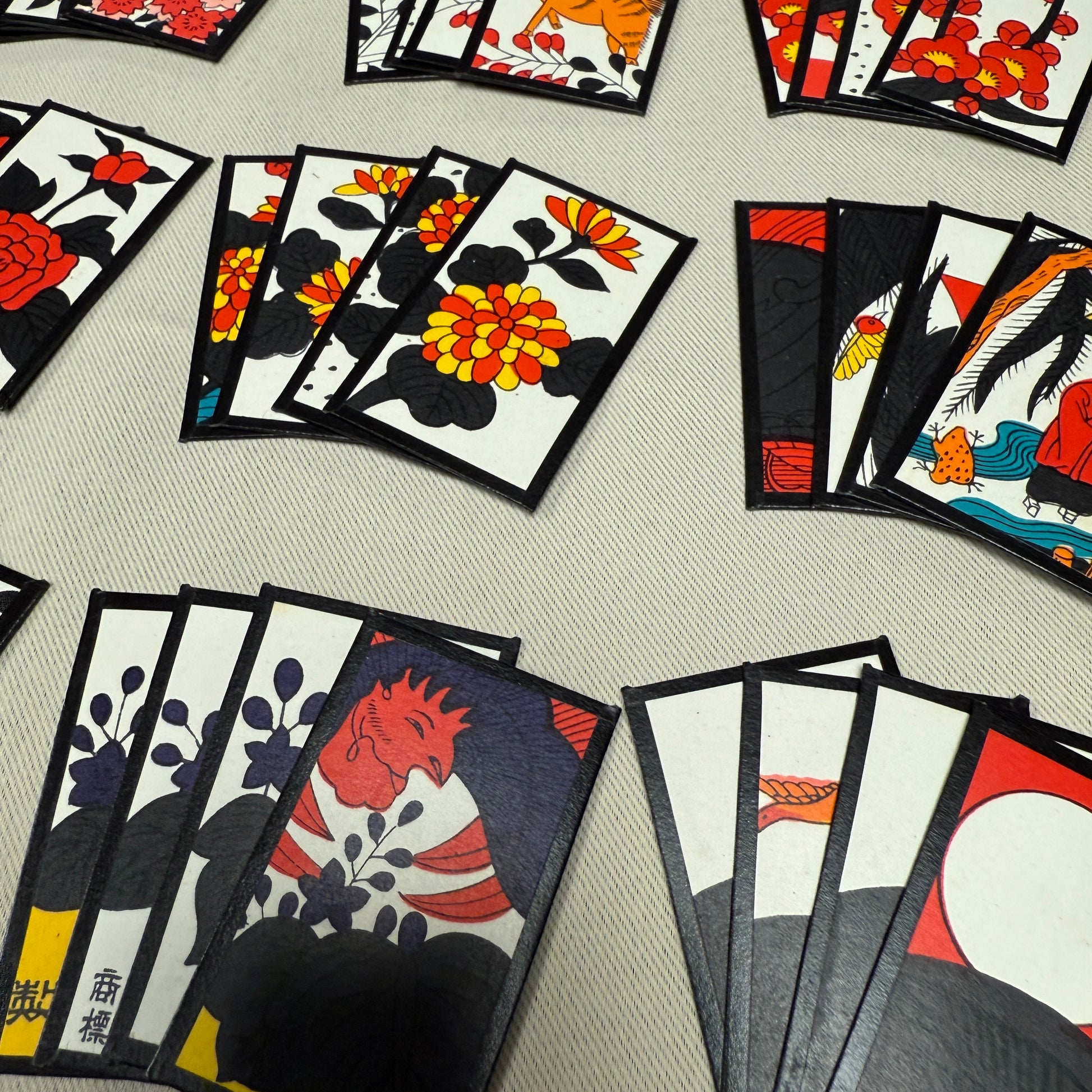 aThis listing is for a complete set of vintage hanafuda cards. Hanafuda is a traditional Japanese card game that blends art, strategy, and seasonal symbolism.