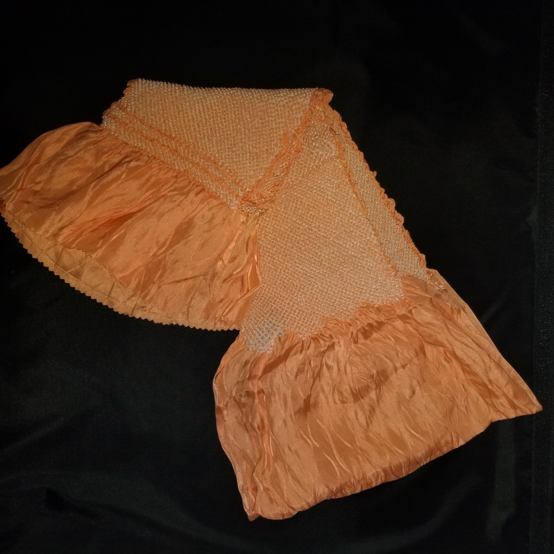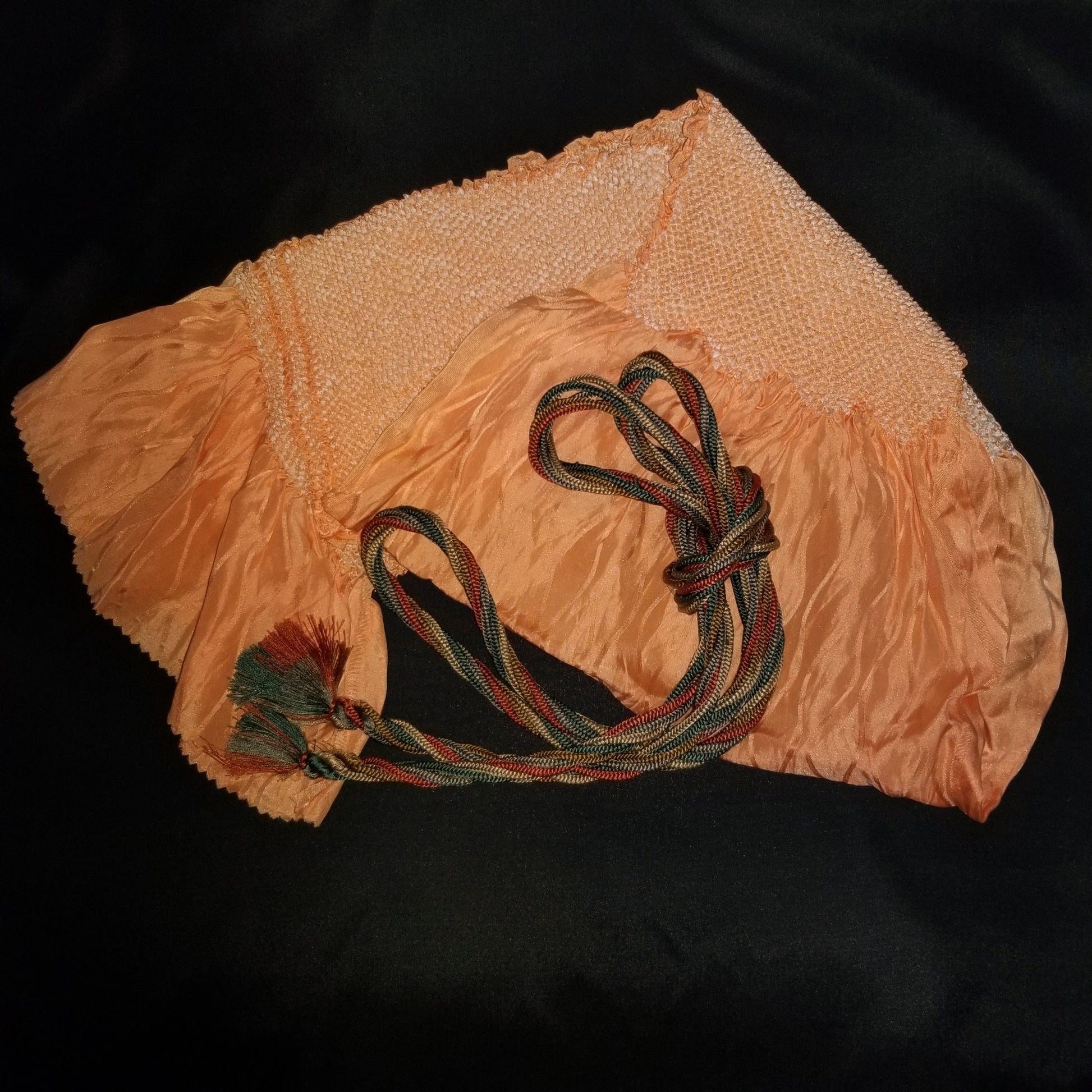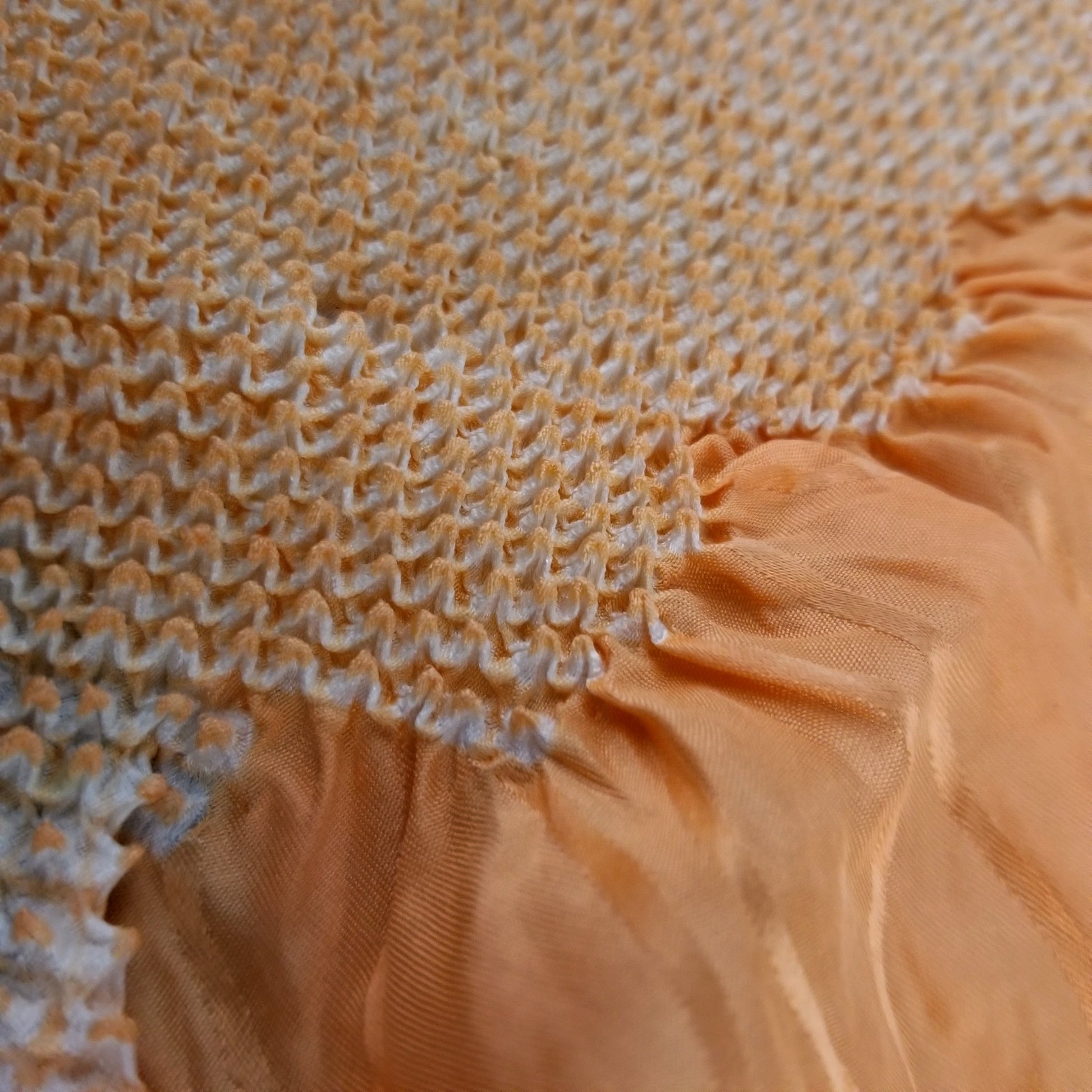 The obiage in this set is a cute peachy orange-pink color. Overall shibori pattern - all with a tight pucker - run along the length.