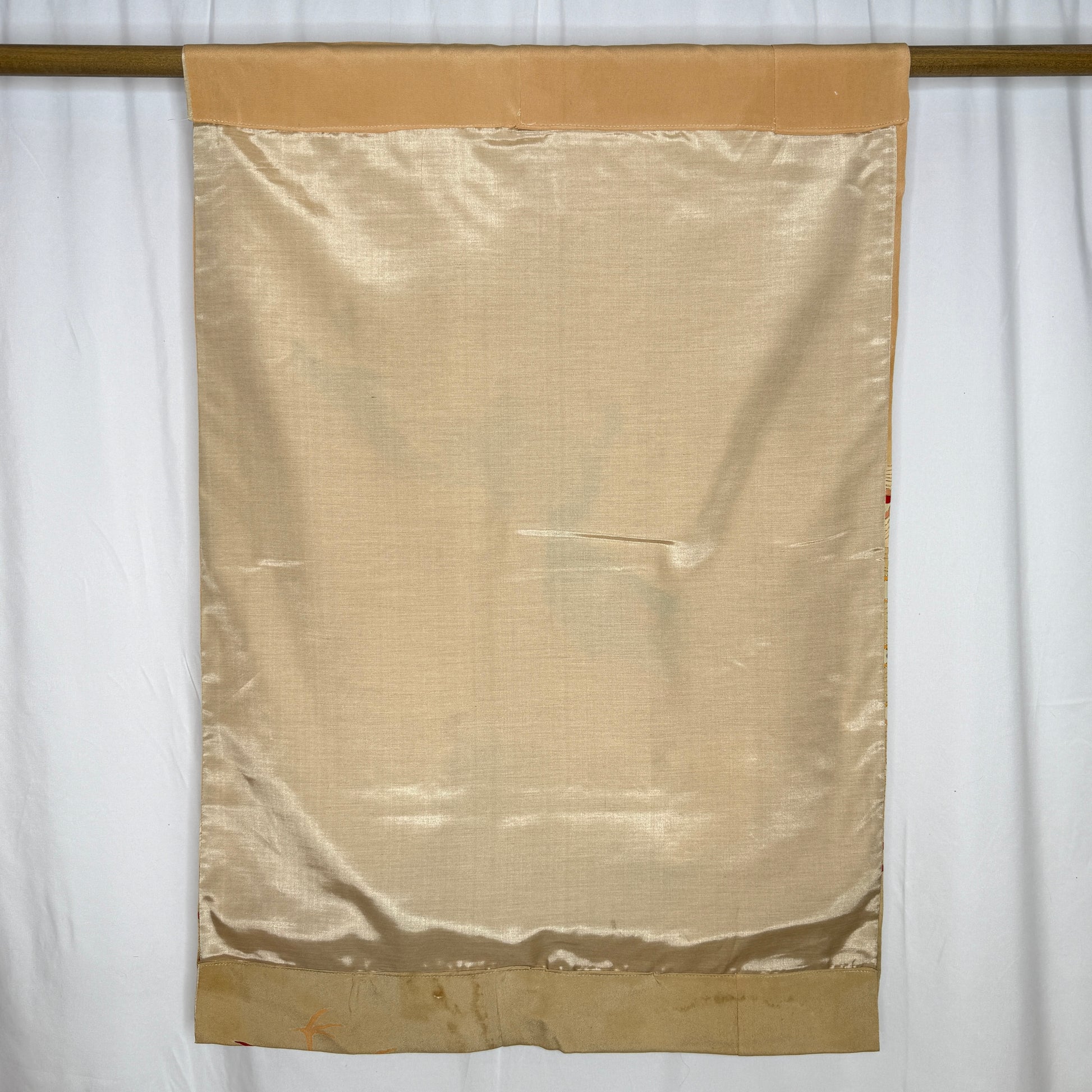 We create these tapestries by salvaging a portion of a kimono when other sections of the garment are beyond repair or rescue. This listing is for a wall hanging tapestry made from a woman's antique kimono from the Taisho Period.