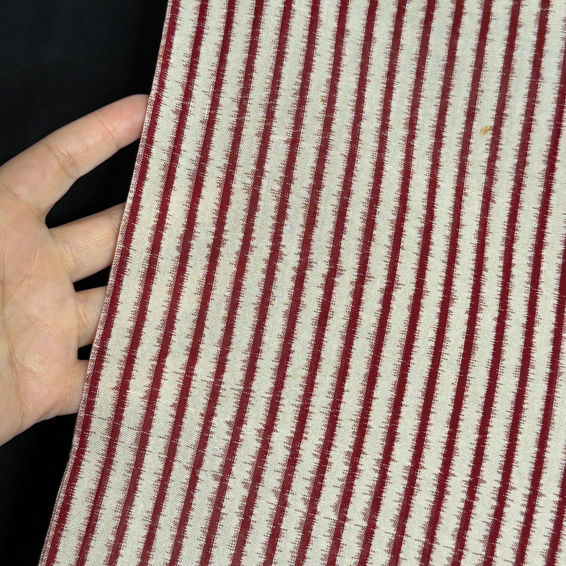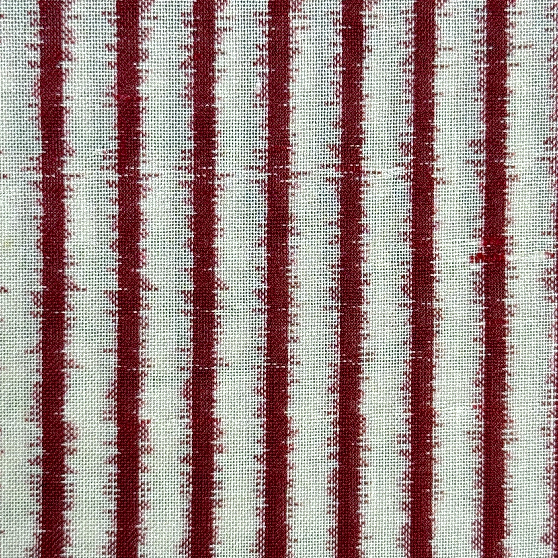 Look closely to see the ikat weave, where the edges of the stripes are fuzzy, adding depth and texture. The ikat technique involves dyeing the threads in a pattern before they are woven so that the images emerge on the loom.