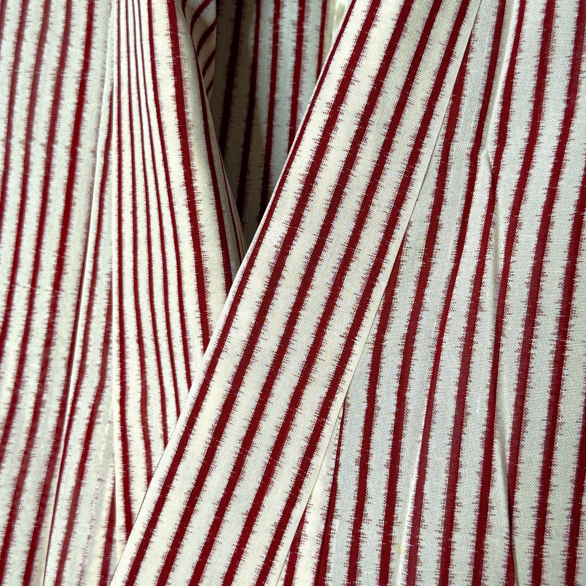 This peppermint toned light weight kimono brings instant holiday charm, using airy woven stripes that feel both festive and refreshingly light. The kimono is unlined and semi-sheer that allows soft airflow, perfect for warm weather, an extra layer, or a seasonal display with its classic red and white color palette.