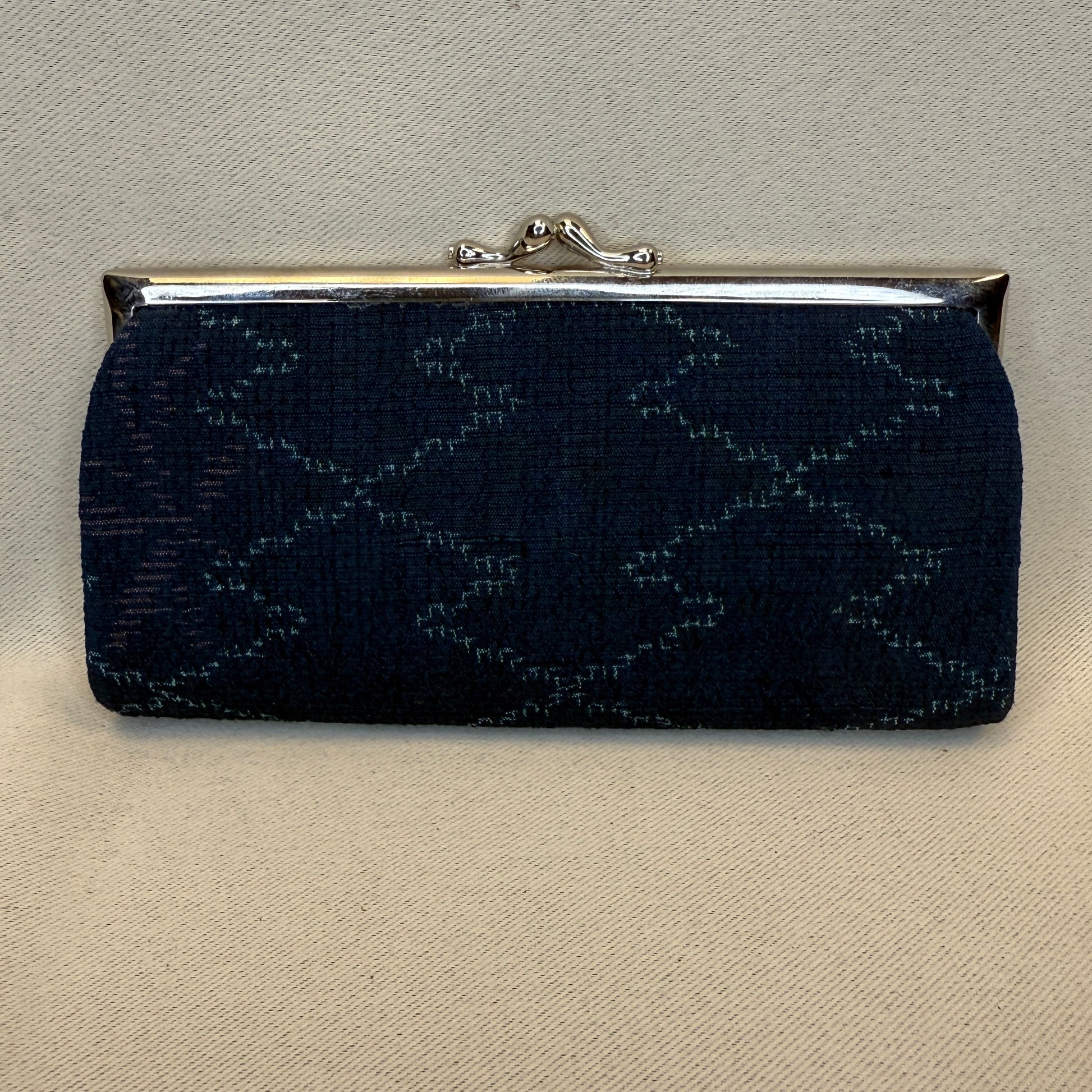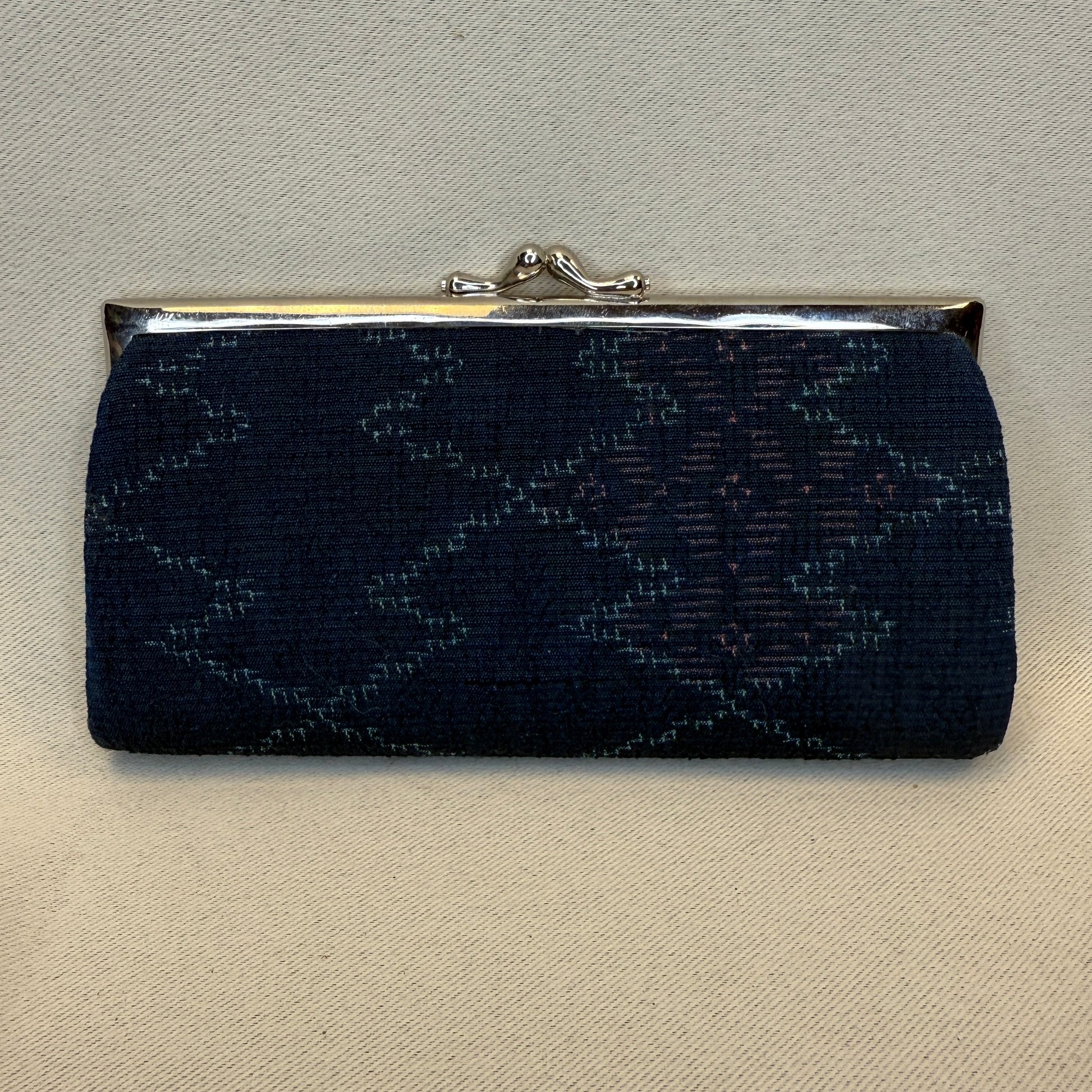 Graceful and understated, this dark blue ikat clutch purse captures the quiet elegance of Japanese design through its woven pine lozenge motif which is a symbol of strength and enduring beauty.