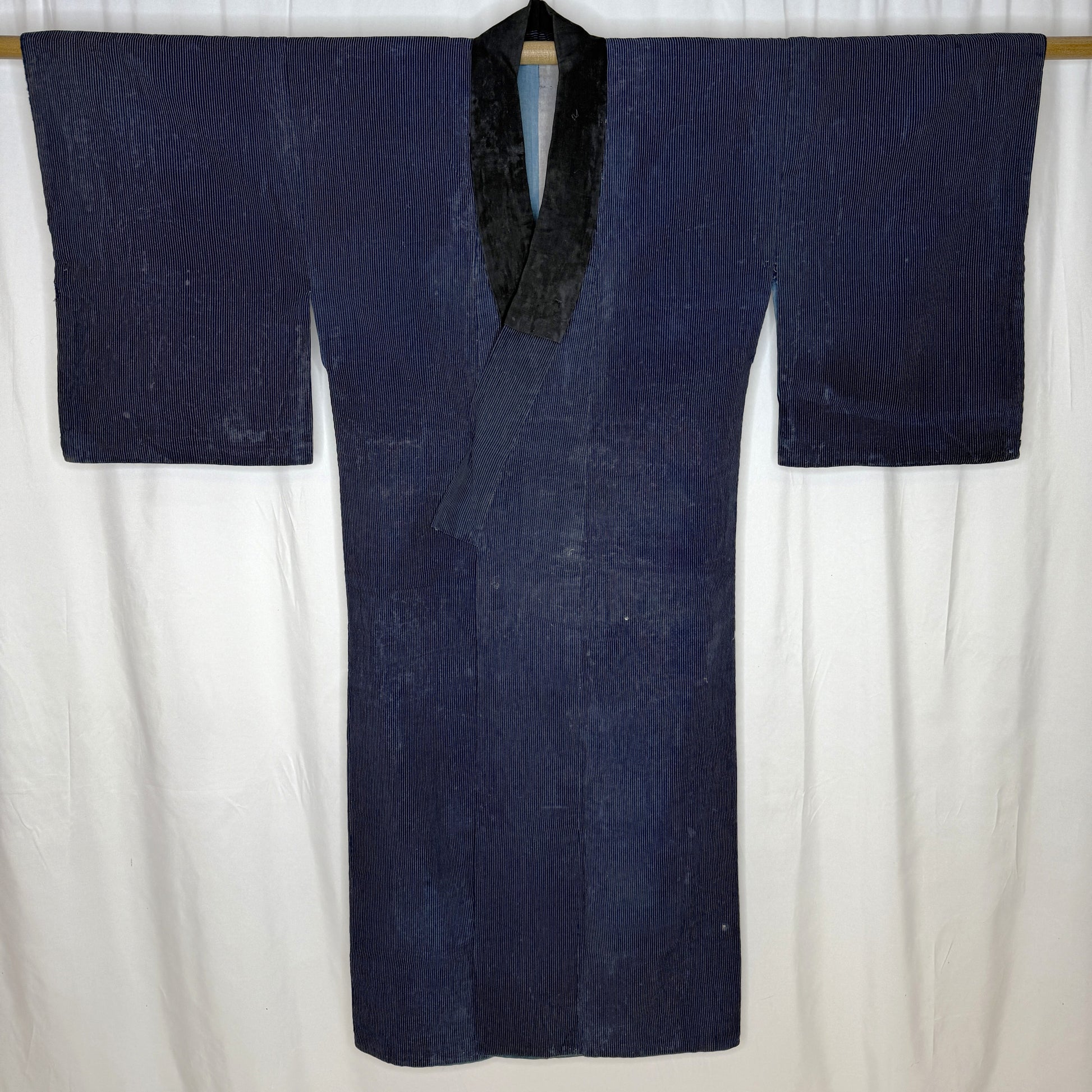 You'll find boro patchwork in one spot - see photo - which nods to the value of this garment to its first owner. We've categorized this as a woman's kimono but it's unisex.