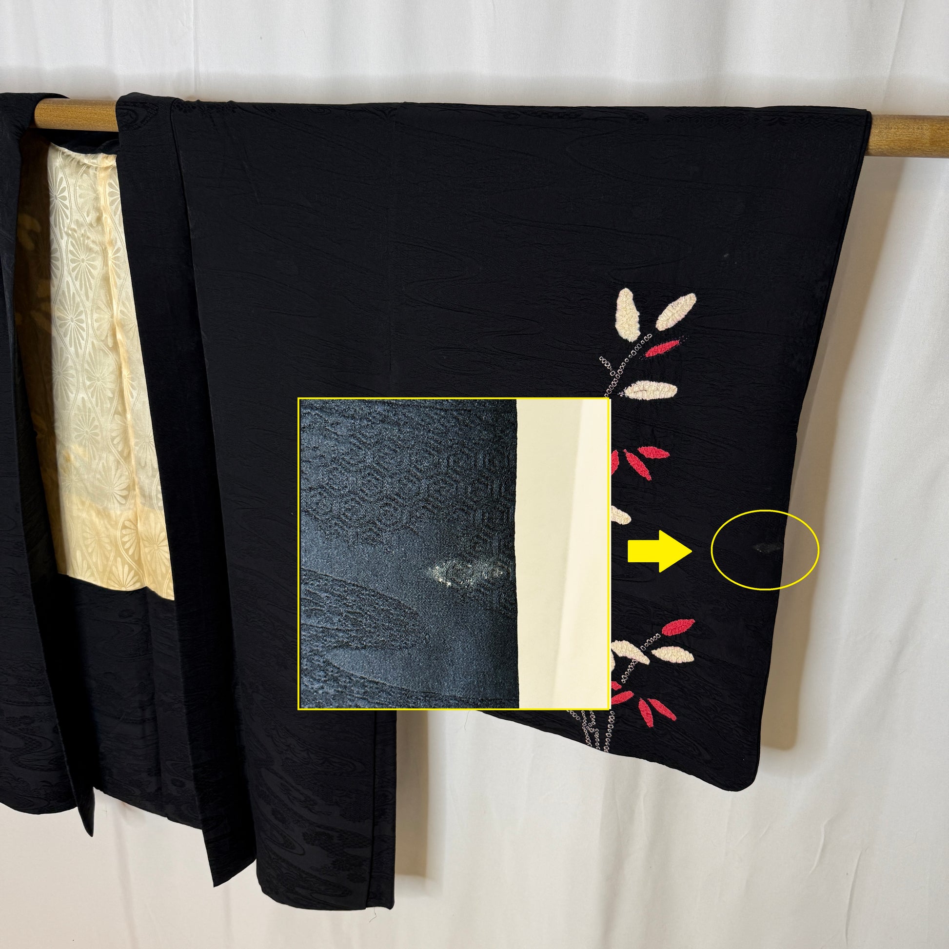 Going to display this haori? We offer wooden display rods in four colors to choose from. Add one from the tab below this description.