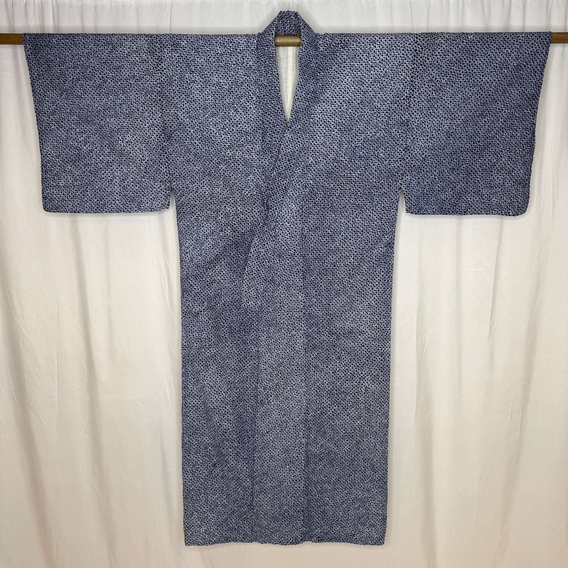 Slip into the soft magic of vintage shibori (Japanese tie dye) with this indigo cotton yukata, covered in thousands of tiny star-like dots. The hand-tied effect is showcased beautifully with a textured, living surface that feels both artisanal and elegant.