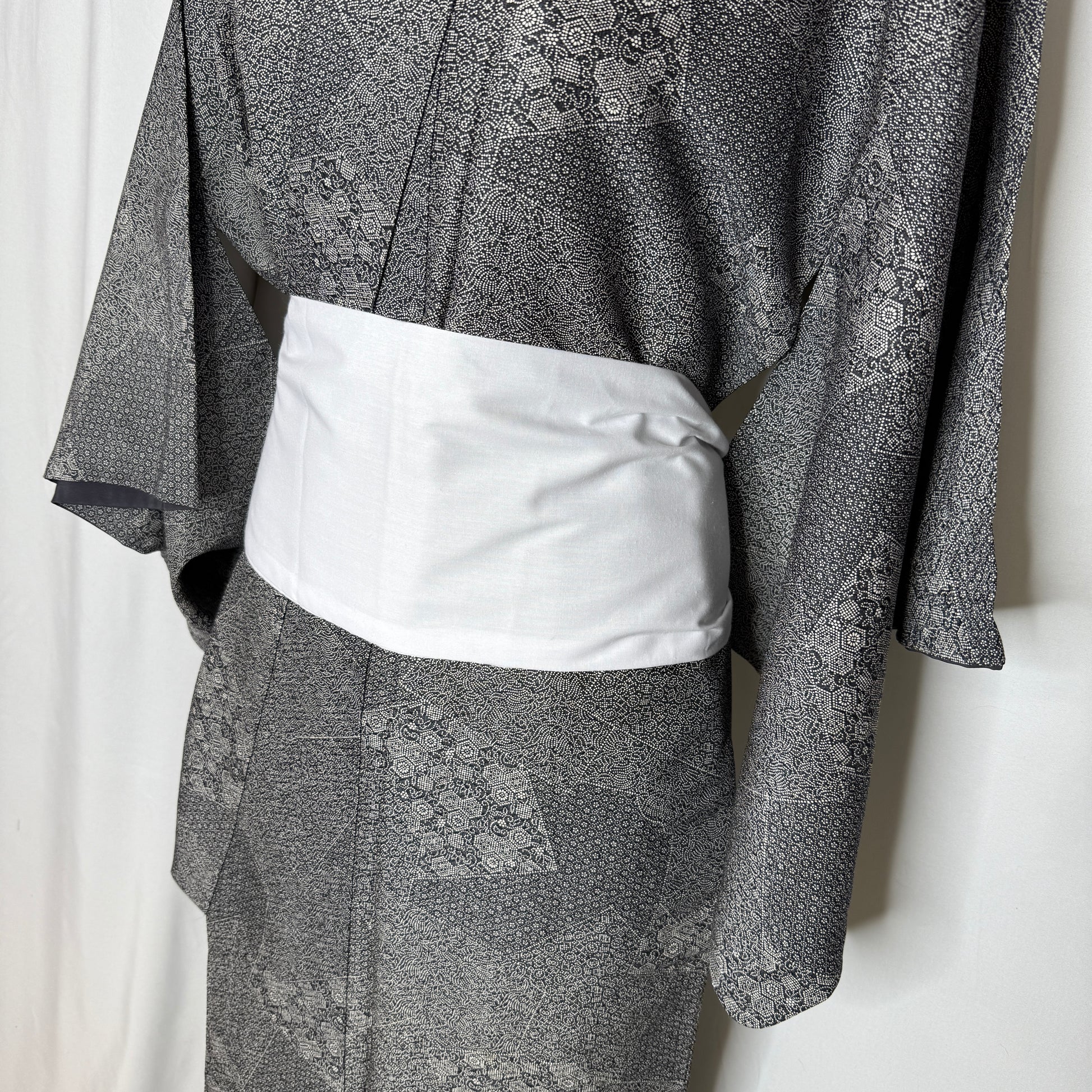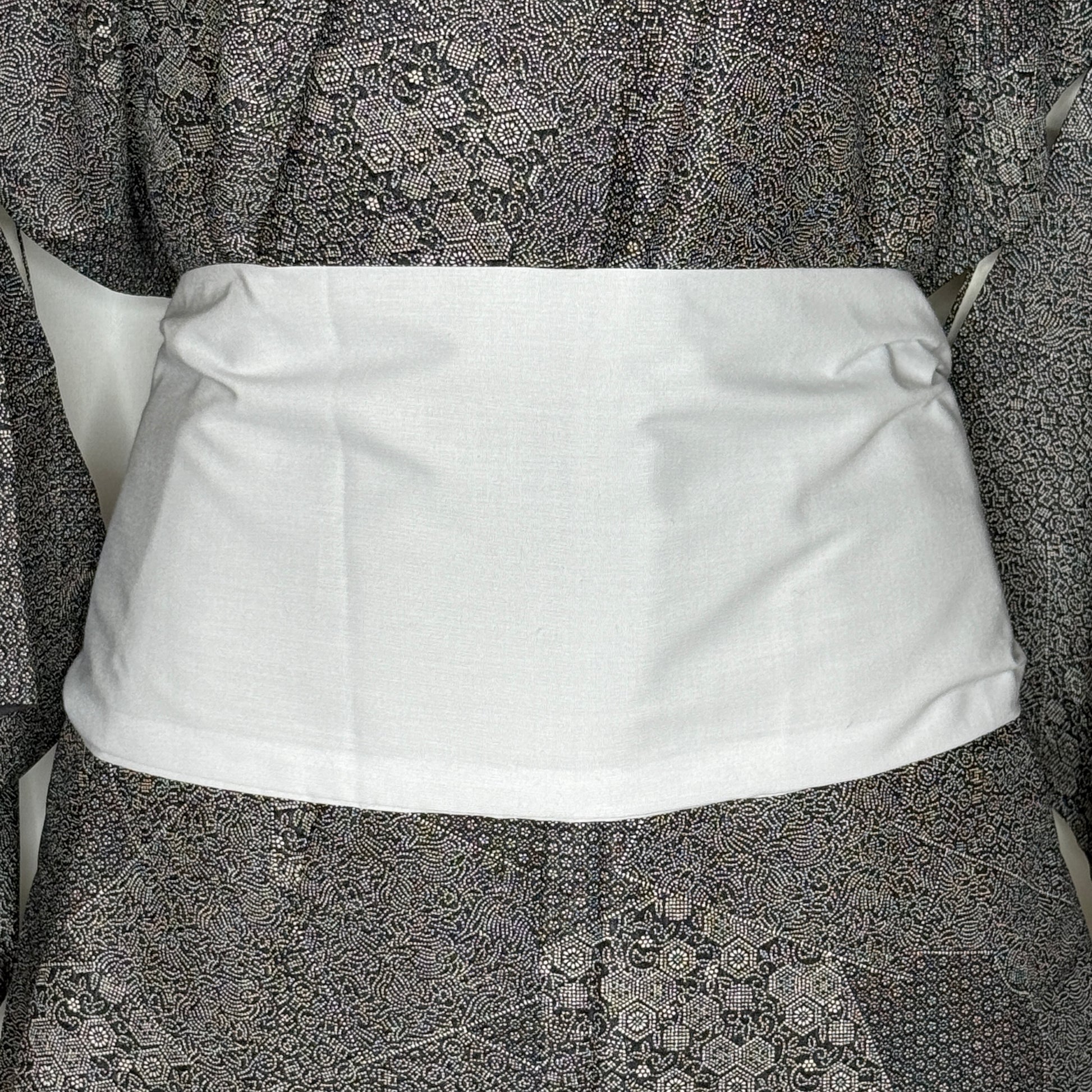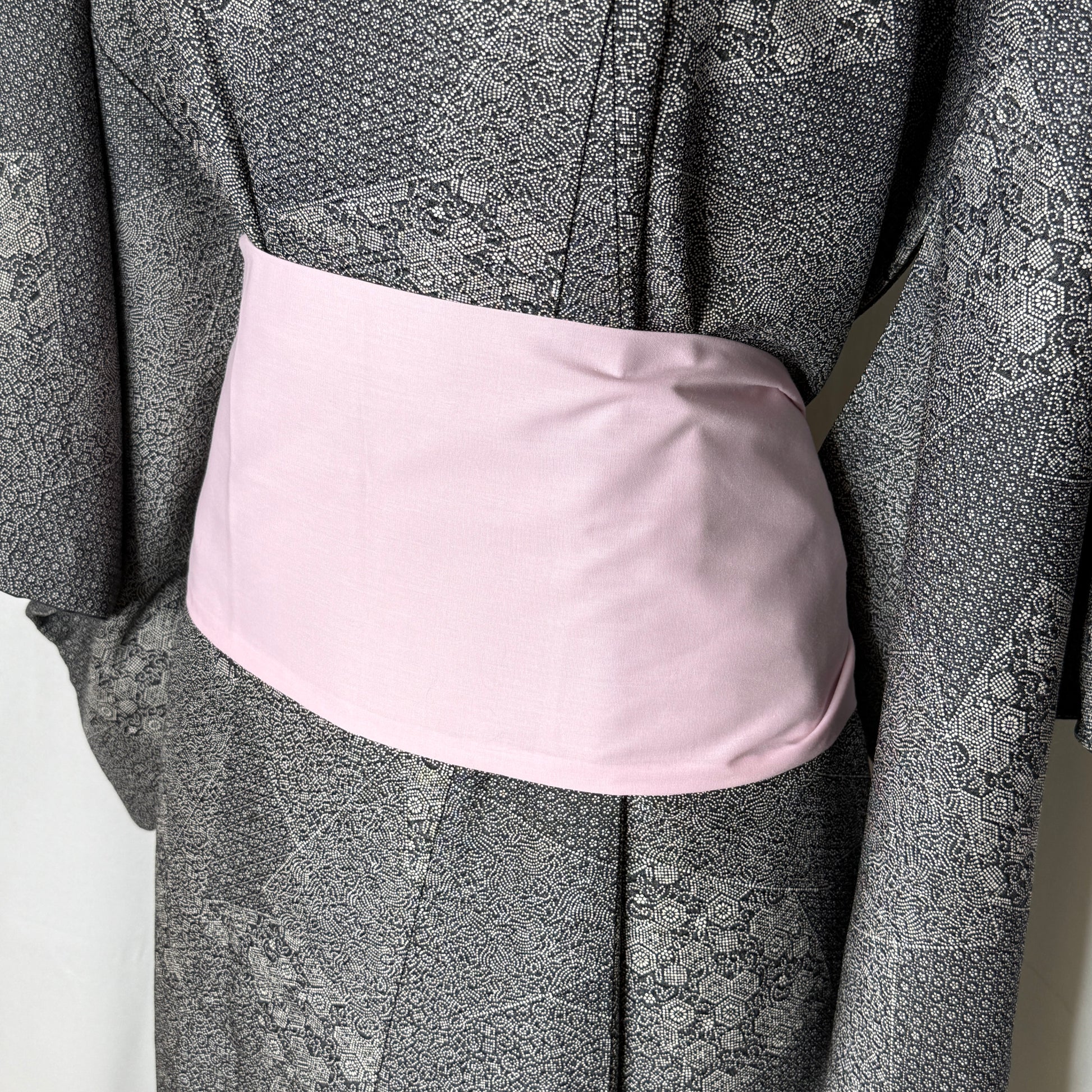 Each is made from contemporary, solid color fabric - not silk and not Japanese - and they are soft, not stiff like an obi would be. Still, a great addition and finishing touch to any of our kimono!