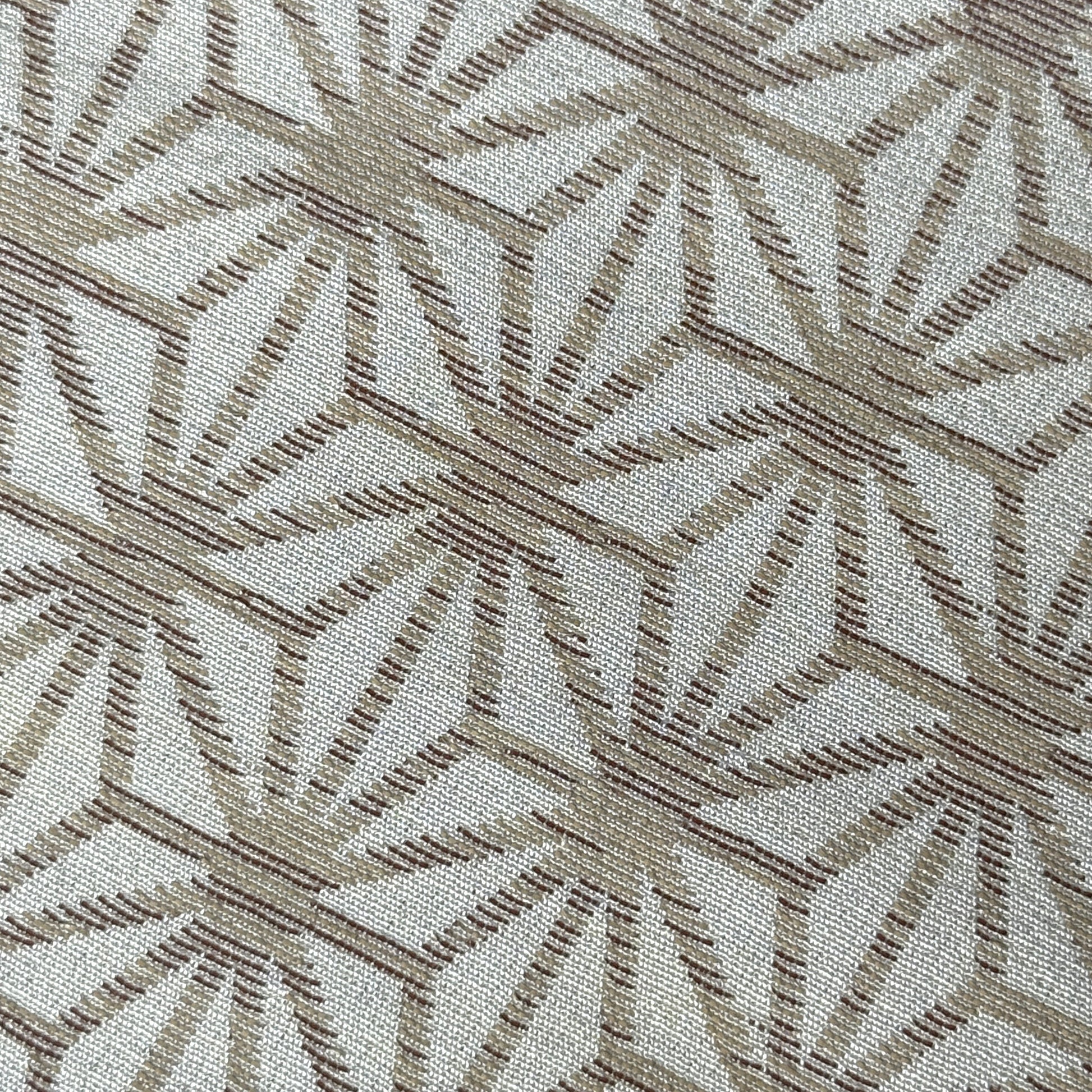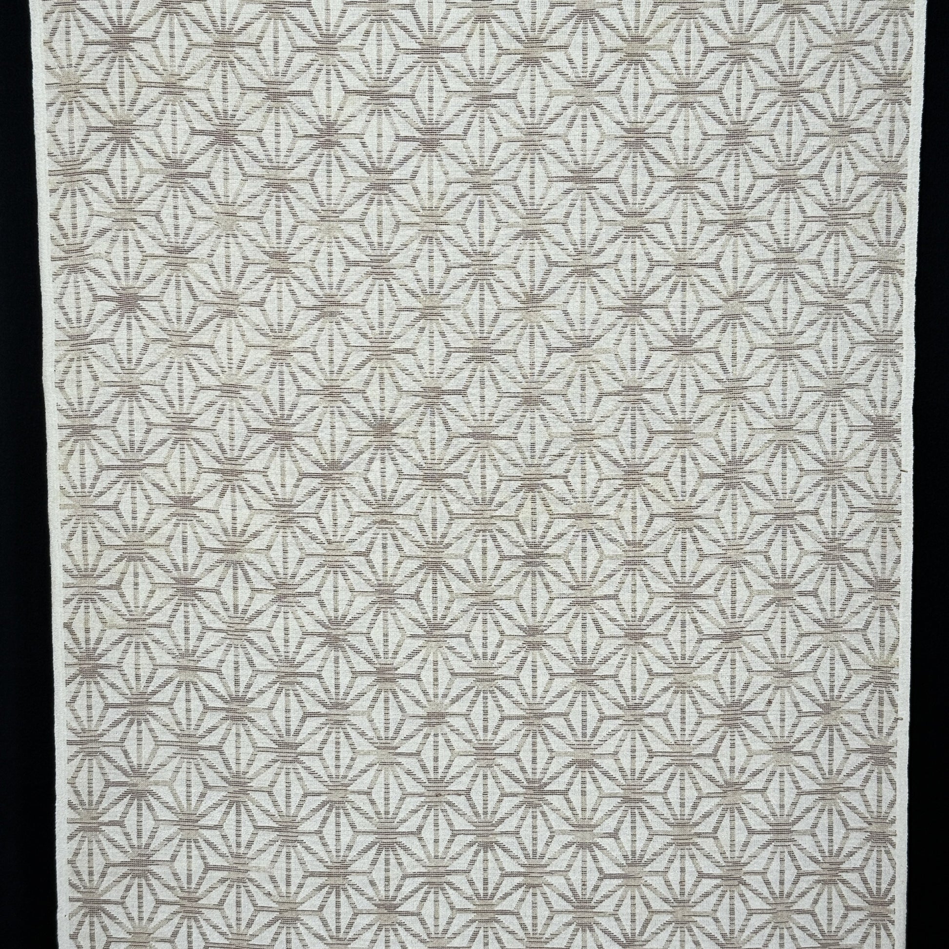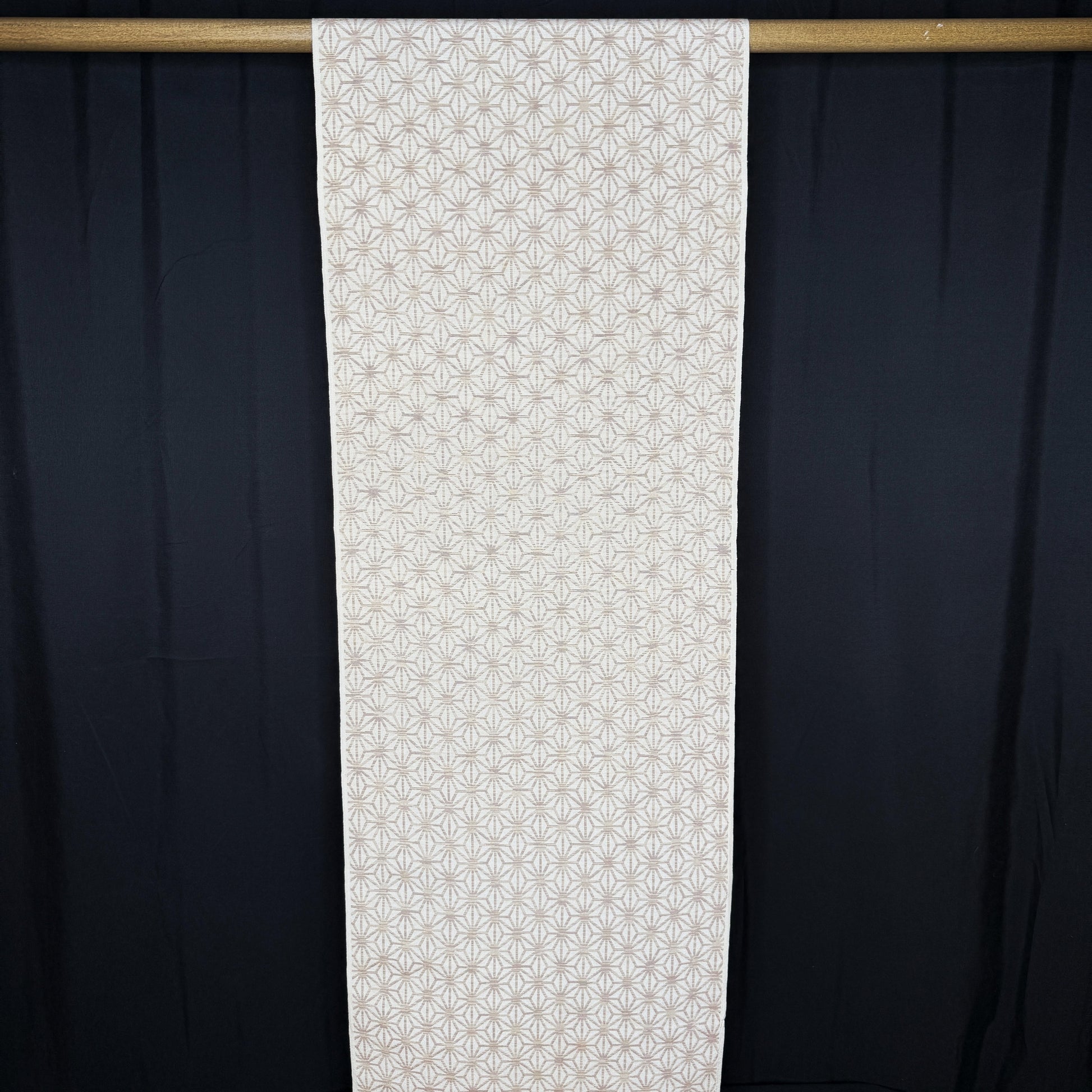 This kimono fabric features the classic asanoha (hemp leaf) motif, a timeless Japanese geometric pattern symbolizing growth, resilience, and protection. Soft beige and golden brown threads are woven to form interlocking star-like shapes. Tradition and elegant minimalism.