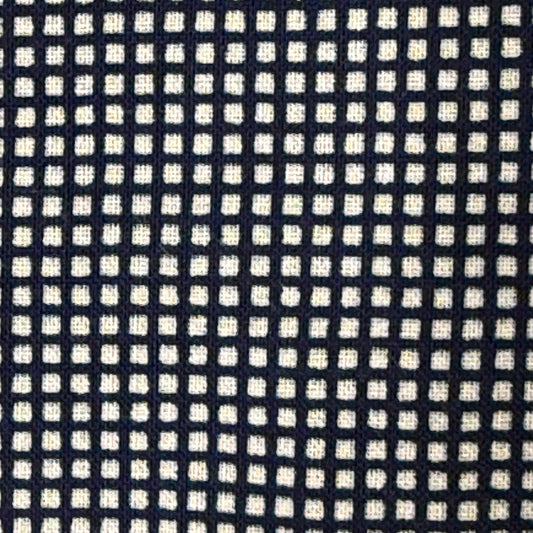 The outer jacket fabric is dark blue with an overall tiny geometric grid.