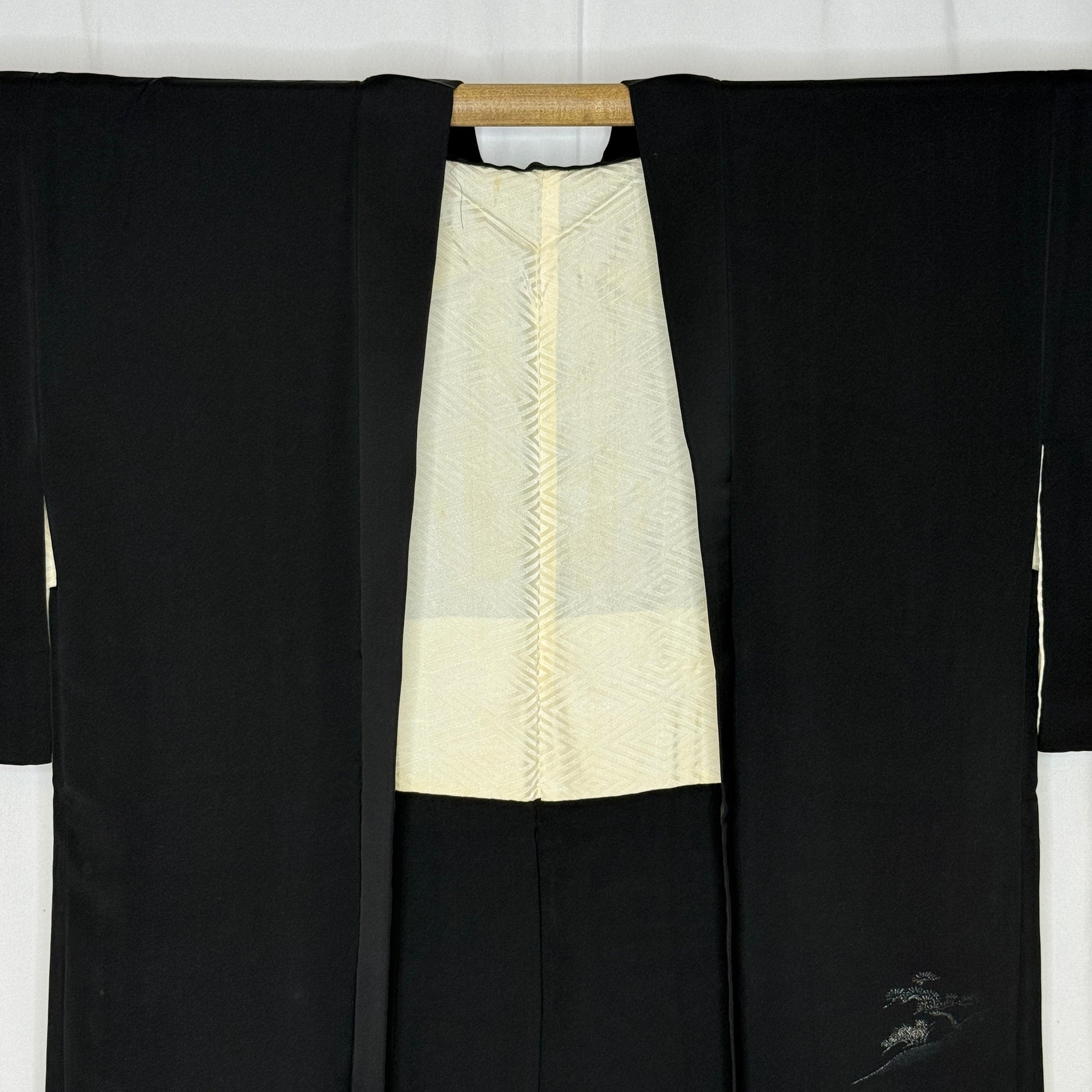 This listing is for a vintage Japanese haori jacket that would have been worn on top of a vintage kimono on a chilly day. Black haori like this are sometimes called "visiting haori" since they were worn for semi-formal occasions, like attending a community gathering.