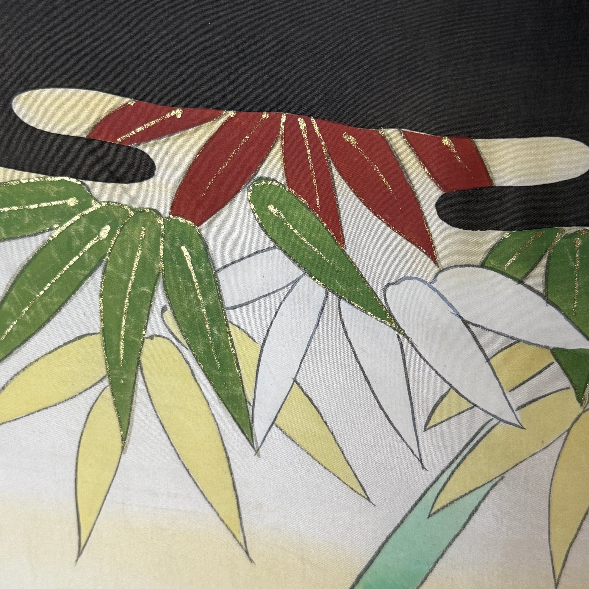 Unfortunately, there is some fading of the black and a small blemish on the back sleeve, but these do not detract from the artistic display of motif, composition and embellishments. See last photos.