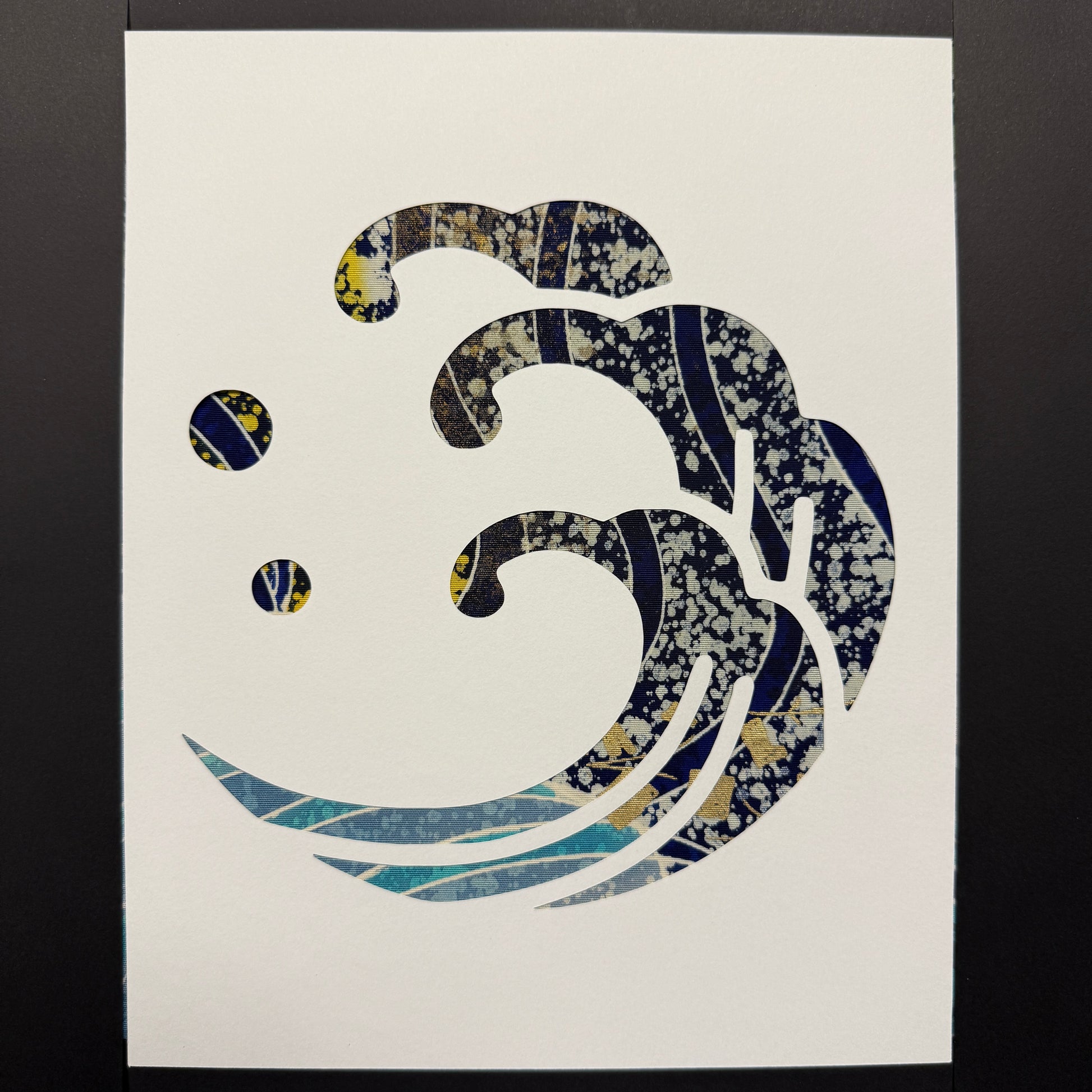 This listing is for a decorative image taken from a vintage Japanese katagami stencil, suitable for framing. It is not part of the original stencil - it is a copied image, machine-cut, on thick art paper. See below for how these traditional stencils were designed, cut by hand and used to pattern Japanese textiles.