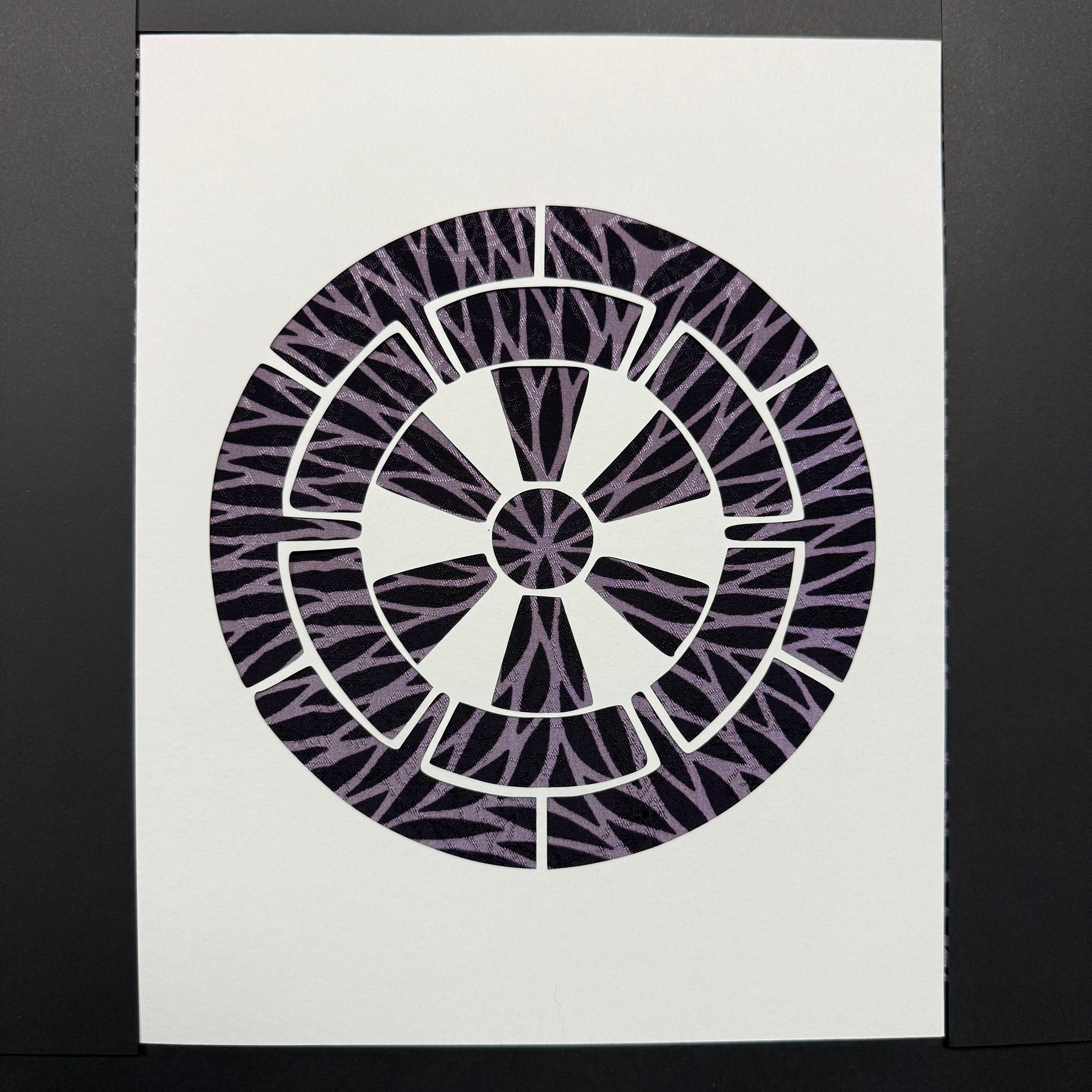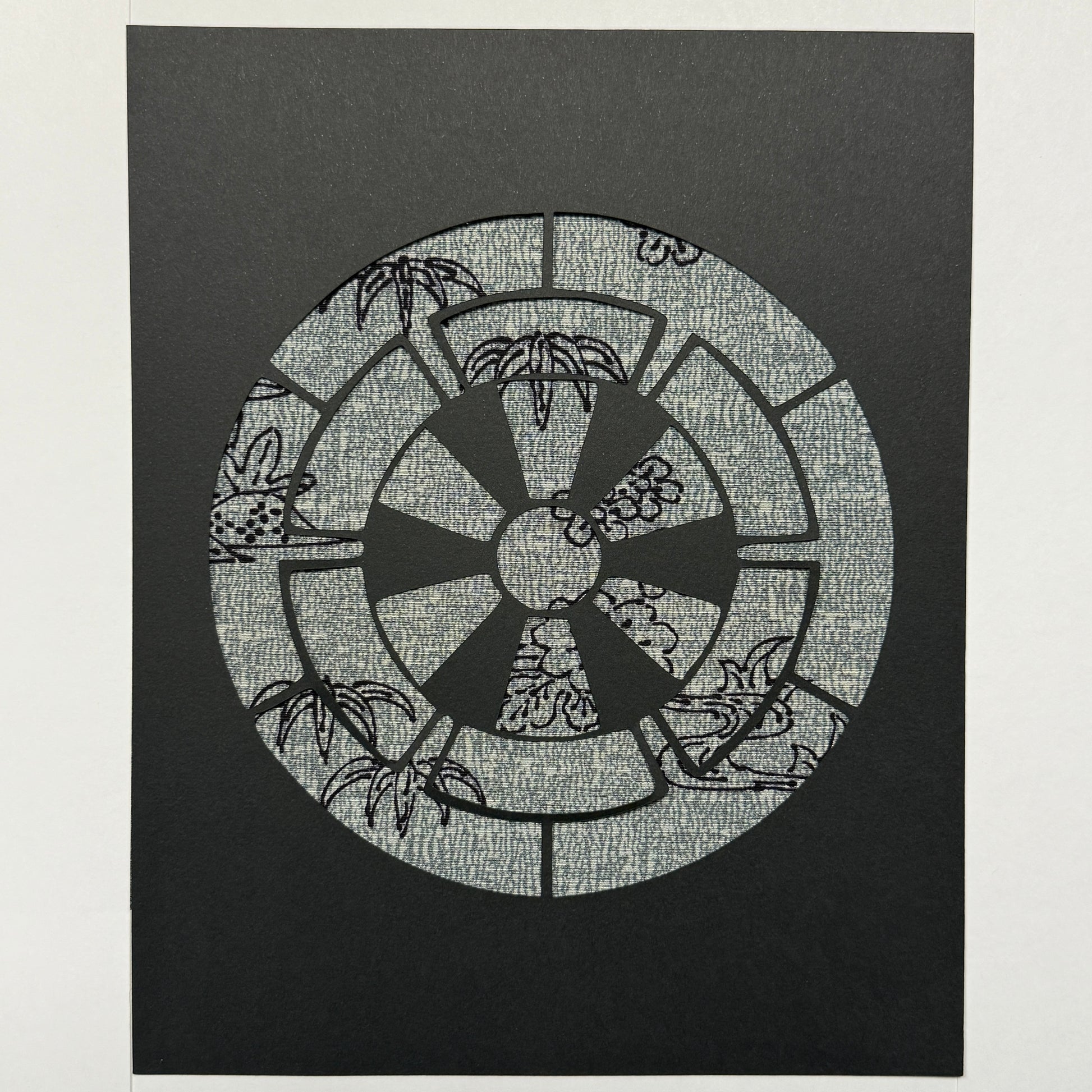 This listing is for a decorative image taken from a vintage Japanese katagami stencil, suitable for framing. It is not part of the original stencil - it is a copied image, machine-cut, on thick art paper. See below for how these traditional stencils were designed, cut by hand and used to pattern Japanese textiles.