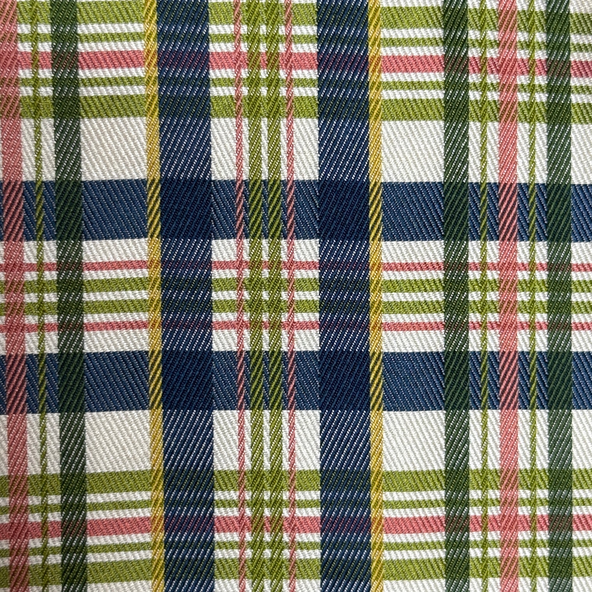 The cheerful, classic plaid pattern feels both nostalgic and fashion forward. The weave blends deep navy, fresh green, and warm pink lines across a cream base to create a multi-dimensional grid. This obi would also be lovely as a table runner at the holidays and beyond, but it is also quite wearable with a kimono!