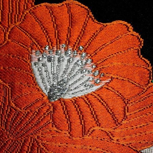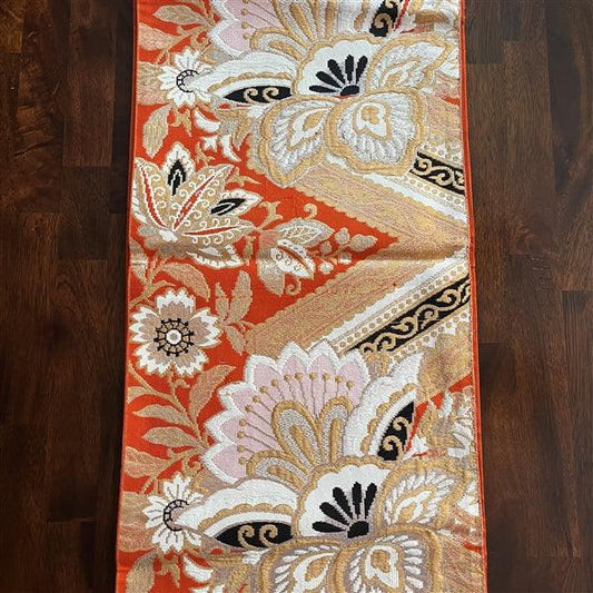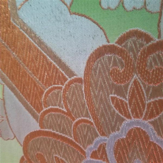 Fukuro obi are patterned on the front side only, but with a one meter plain section on the front (which wouldn't be seen when worn), and a plain back side.