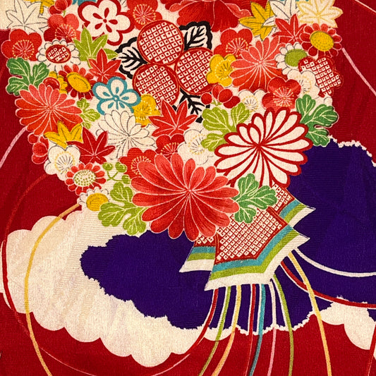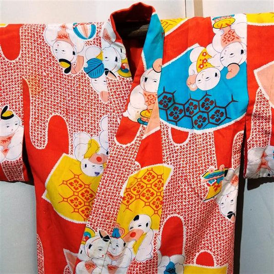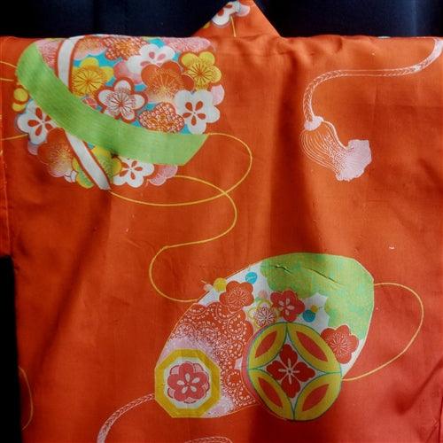Girls' kimono are usually colorful with florals or birds, and though most are quite wearable, they also make cheerful displays. Please check the sizing carefully if you are buying the kimono to be worn - sizing runs small, and many Western pre-teens can often wear adult sized vintage kimono.
