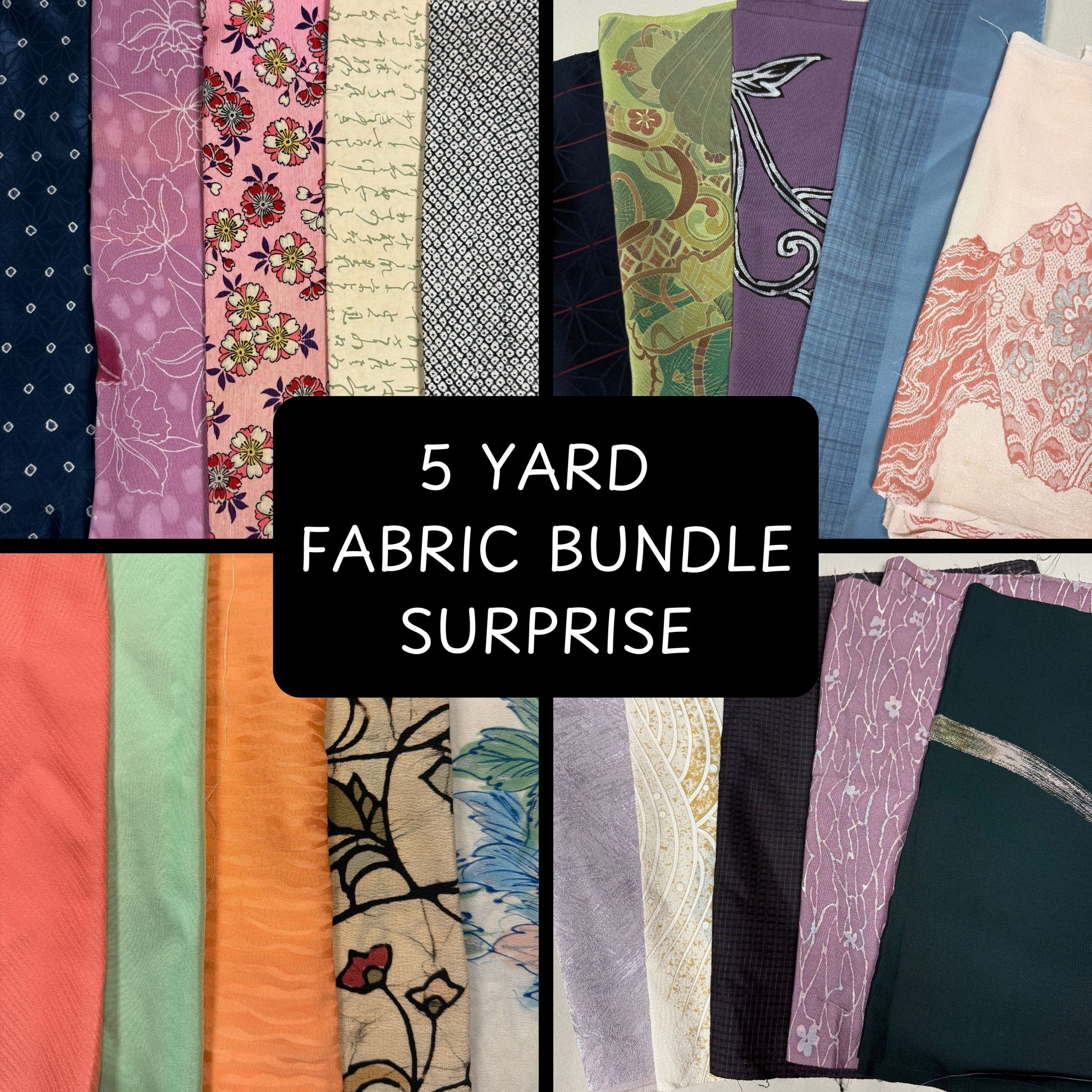 This listing is for a mix of five different 1-yard lengths of vintage Japanese kimono fabric. This yardage can include silks, synthetics or cottons (but we mainly include silks) and will be at least 36" long and 12-14" wide (the typical kimono panel width). The images shown are examples only - yours will be different.