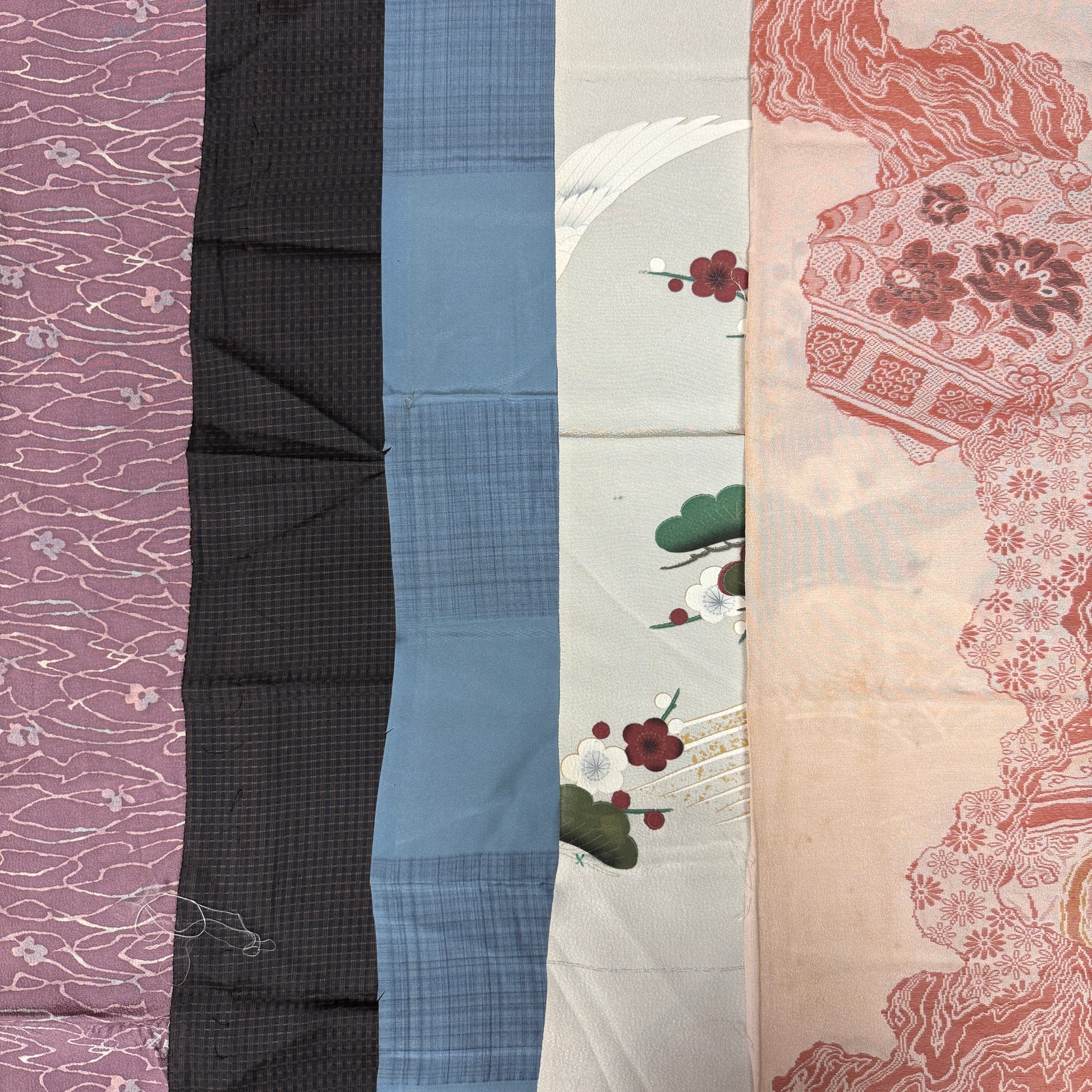 Keep in mind that this fabric is salvaged from kimono that are over 50 years old. We cut around obvious damage but there still might be a slight blemish here or there, so these fabrics are best for piecework.