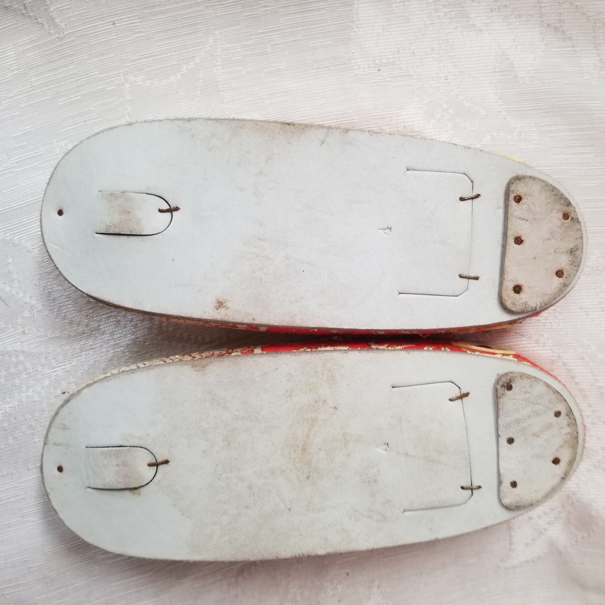 Approximately a US child's size 10 or 11 - see last photos with measured sides: 8" long, 2.75” wide. These do run small and, as you may know, in Japan the heel of the foot sometimes extends off the back of the shoe. Beautiful as decor if the size is too small to wear.
