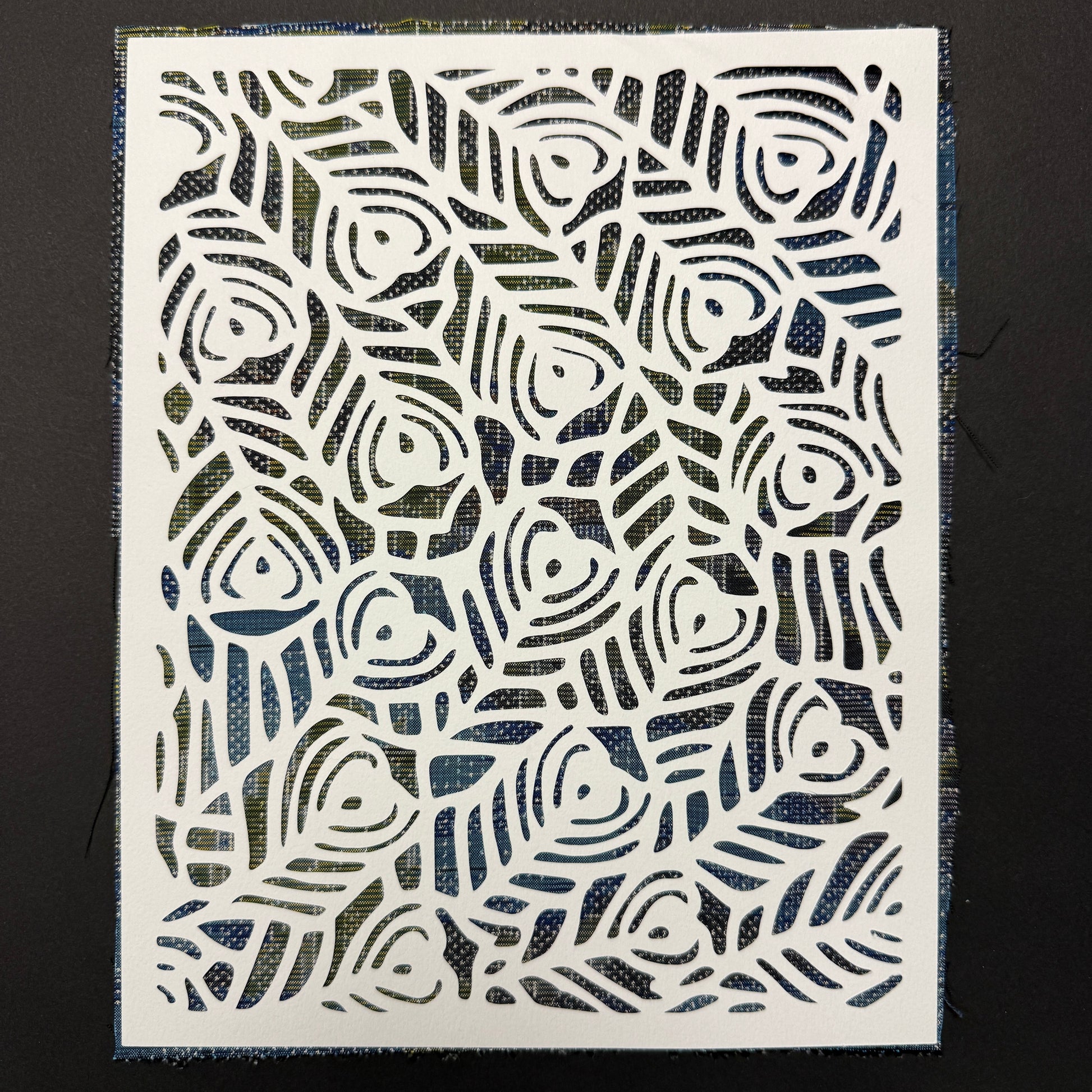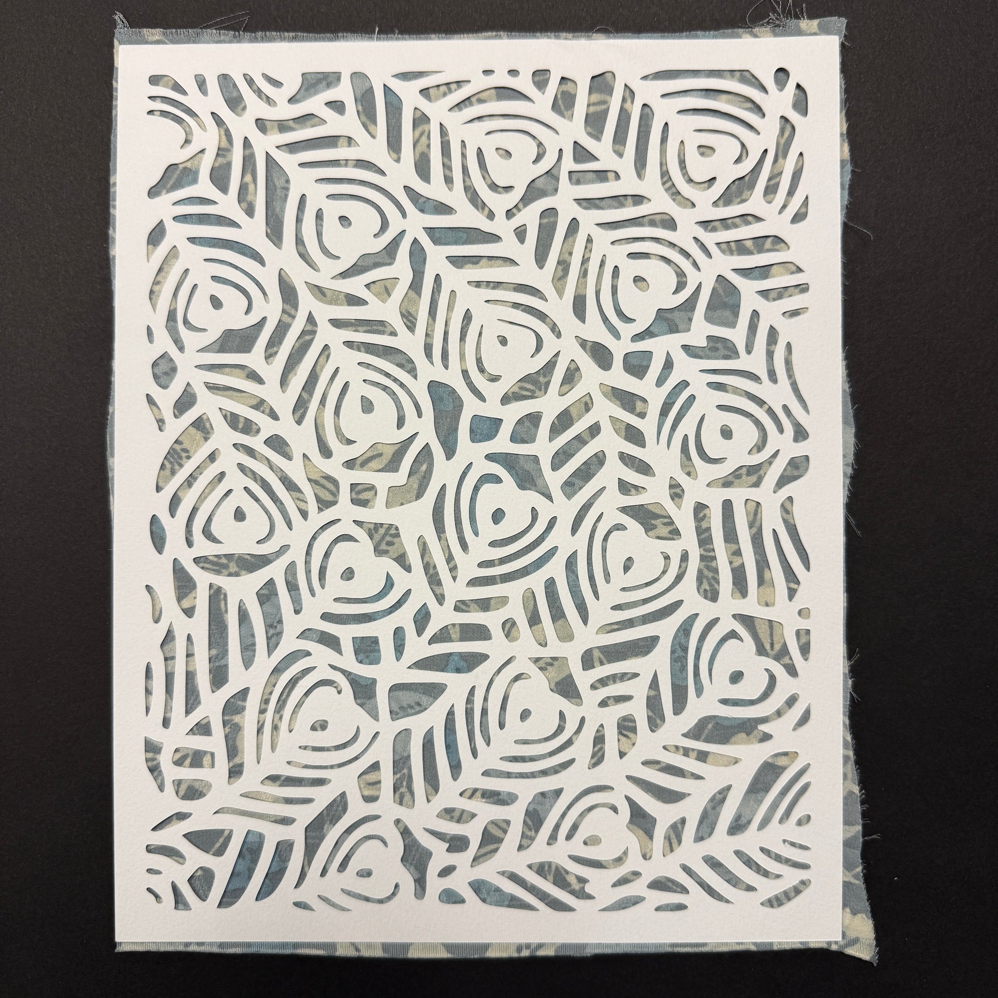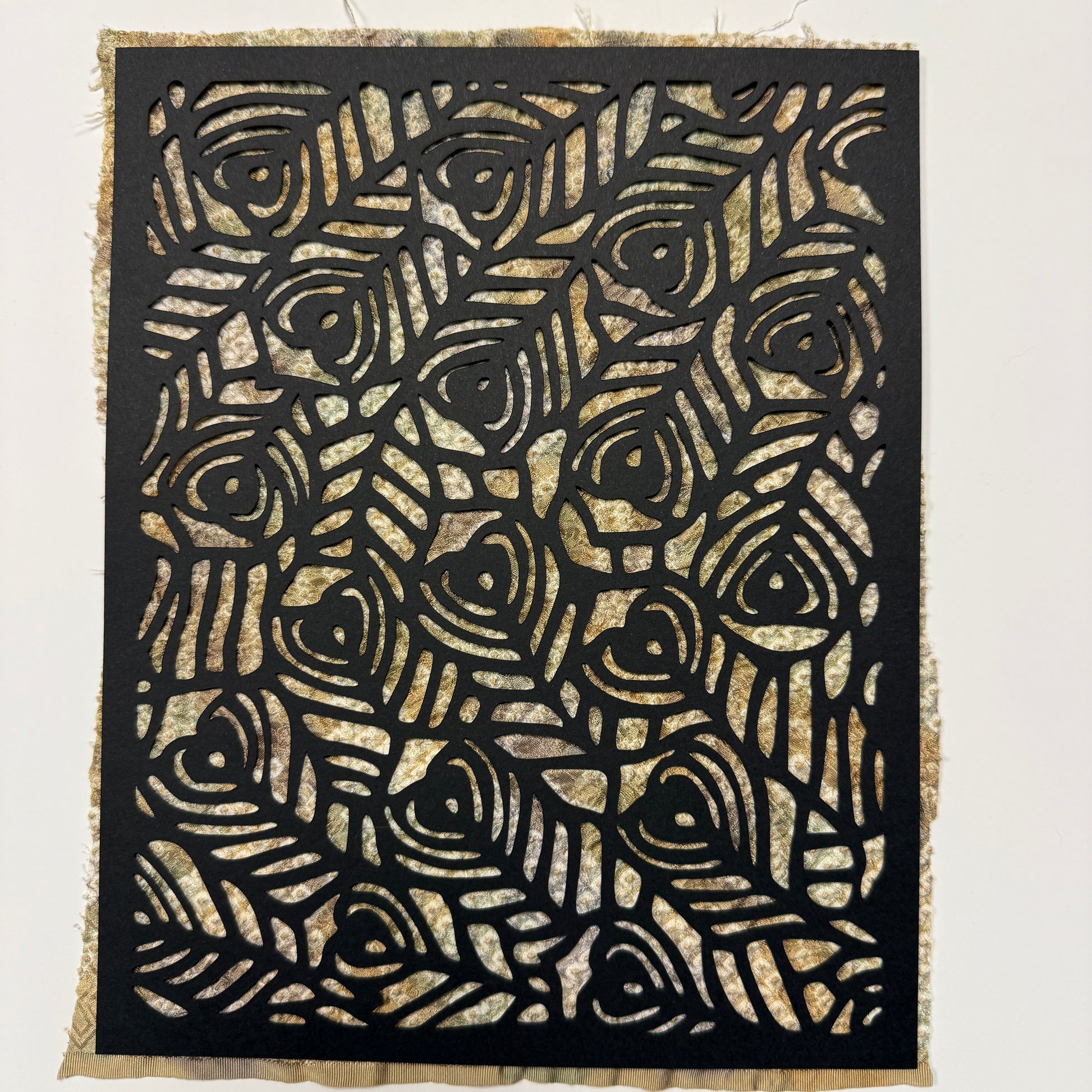 This listing is for a decorative image taken from a vintage Japanese katagami stencil, suitable for framing. It is not part of the original stencil - it is a copied image, machine-cut, on thick art paper. See below for how these traditional stencils were designed, cut by hand and used to pattern Japanese textiles.