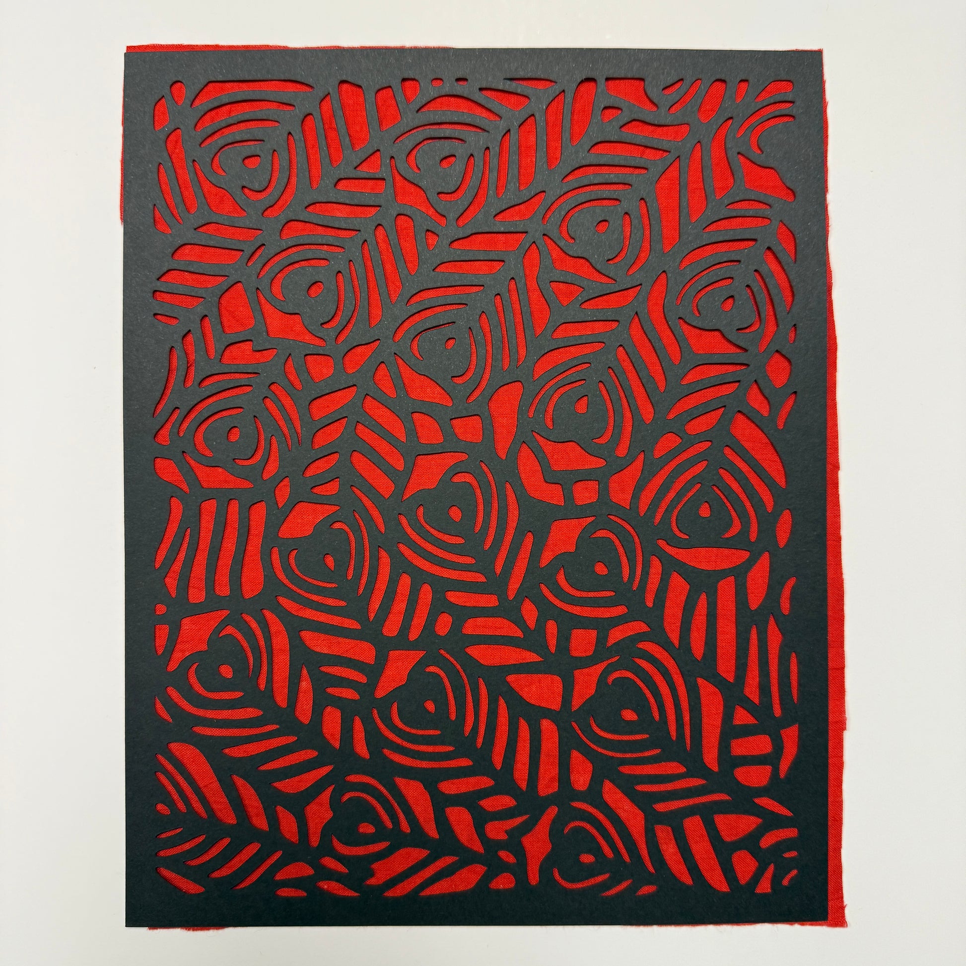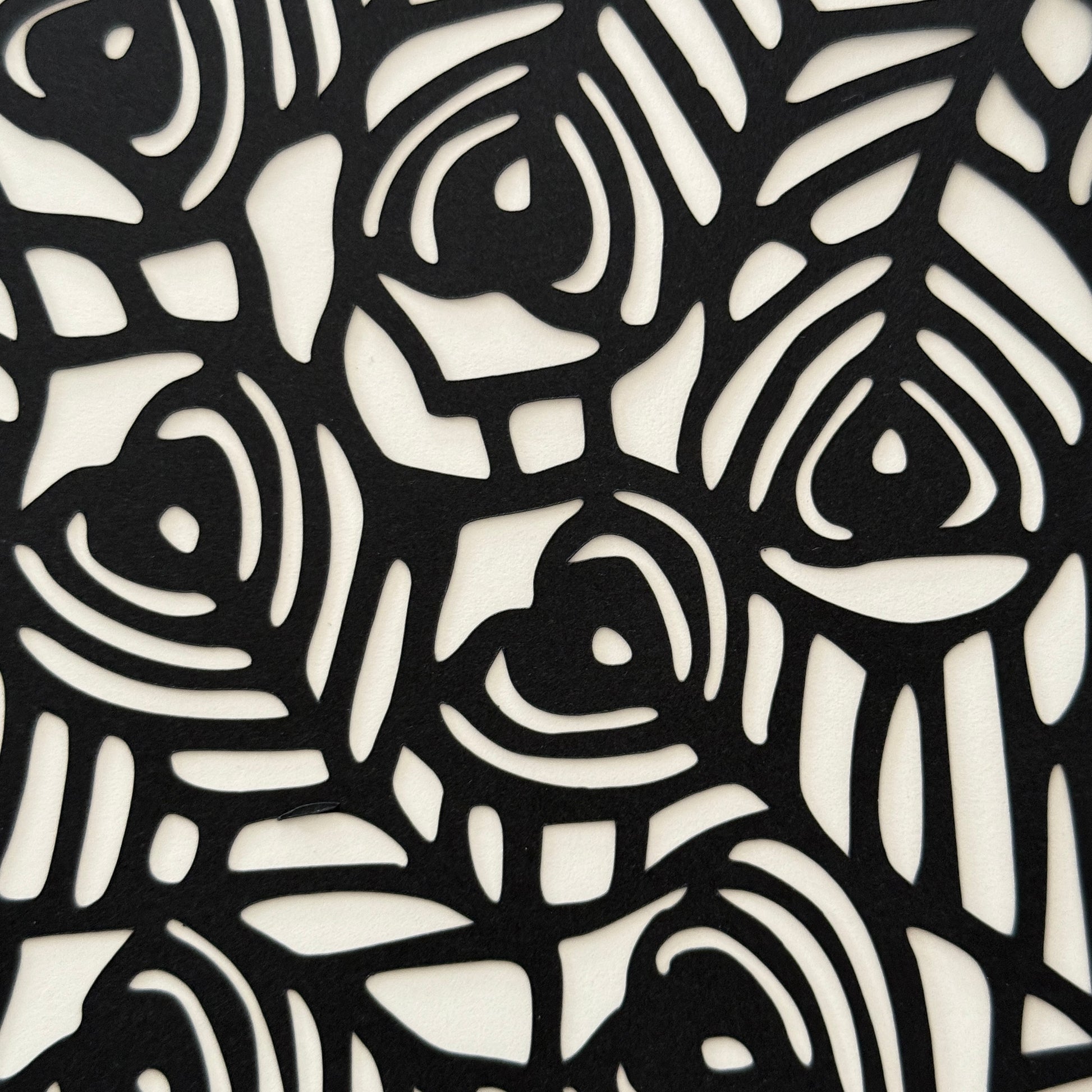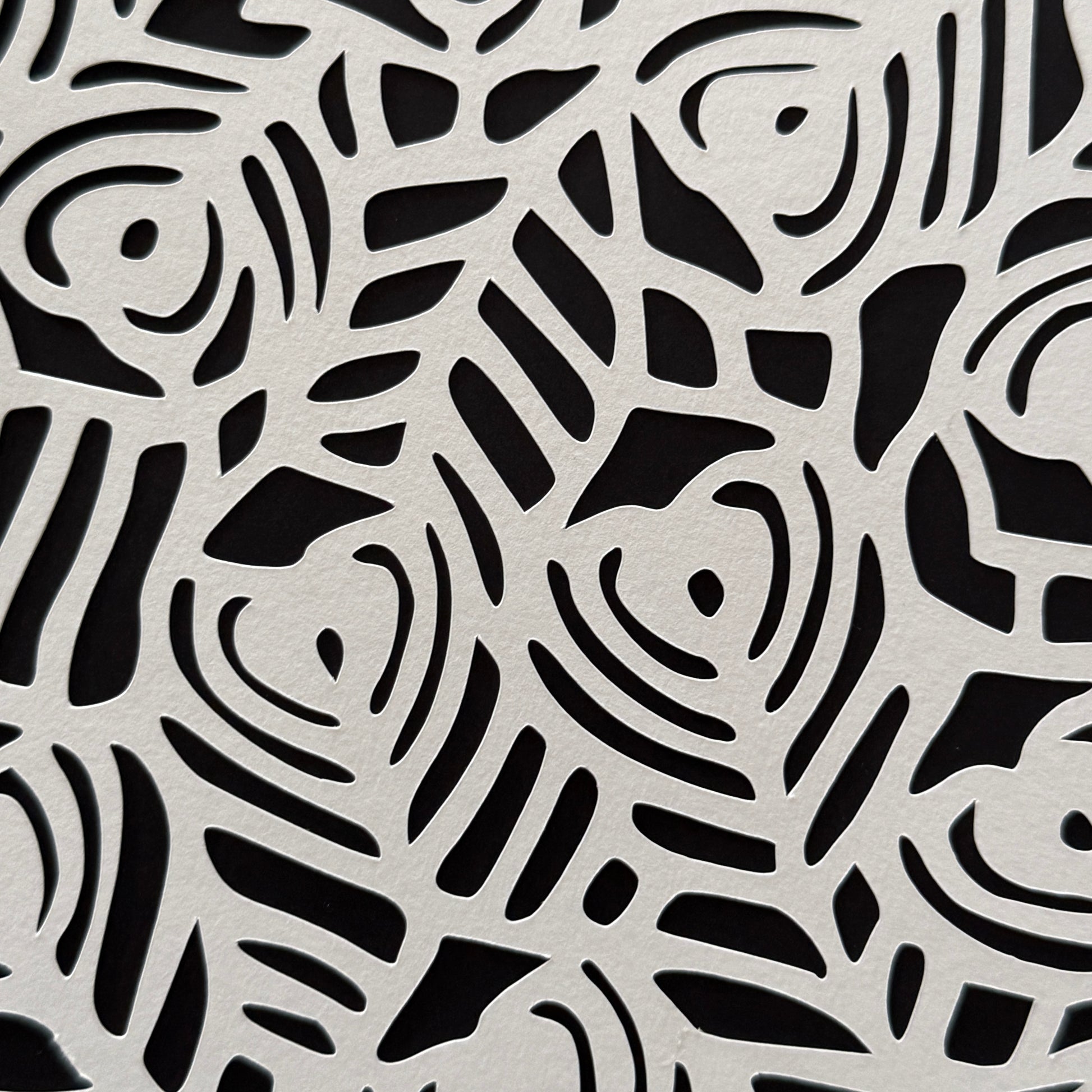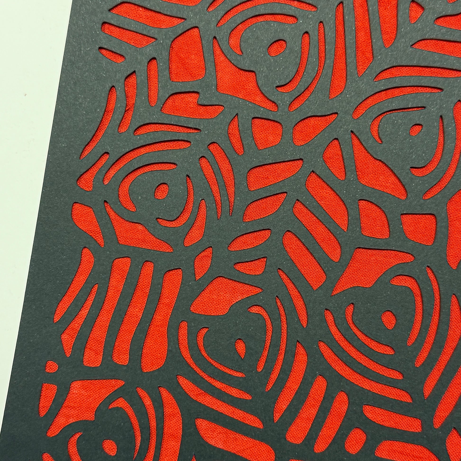 This listing is for a decorative image taken from a vintage Japanese katagami stencil, suitable for framing. It is not part of the original stencil - it is a copied image, machine-cut, on thick art paper. See below for how these traditional stencils were designed, cut by hand and used to pattern Japanese textiles.