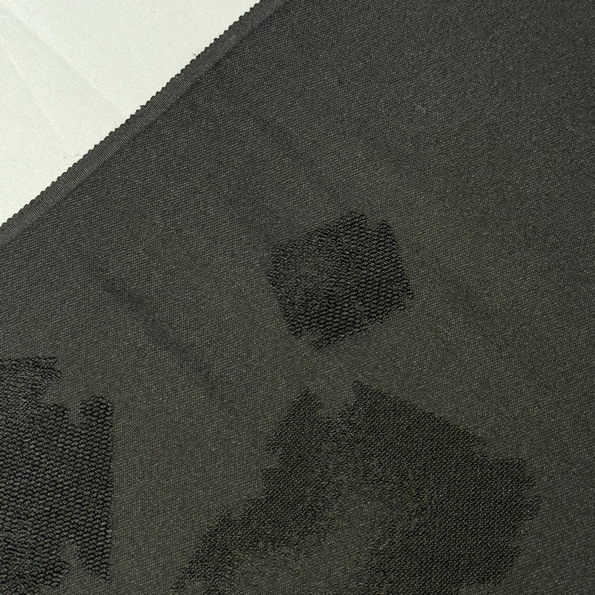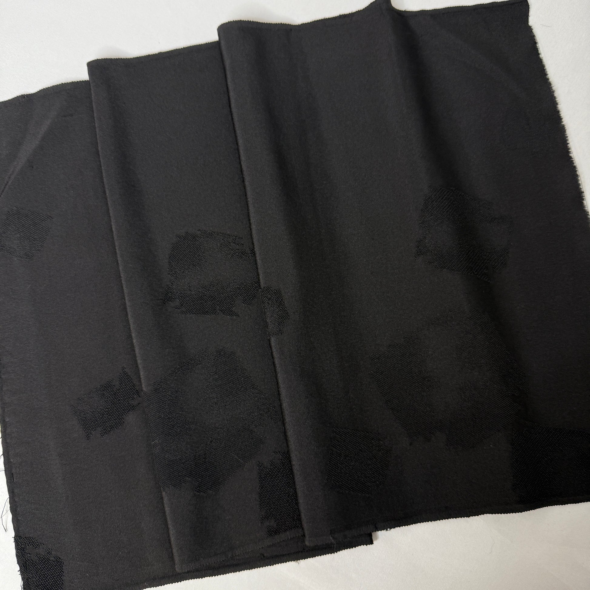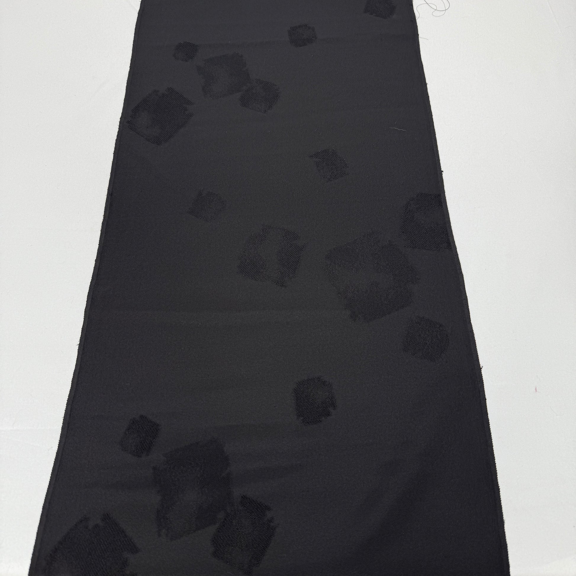 All black silk with a subtle tone-on-tone jacquard. Look closely to see the slightly raised pattern of torn or tattered paper called yabure-gami. This is a wabi-sabi aesthetic - the beauty of imperfection and the passage of time - as the scattered, ragged-edged squares suggest torn paper or precious fabric, which were collected and valued for centuries.